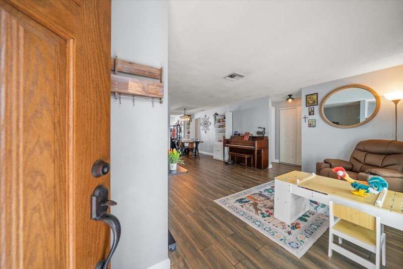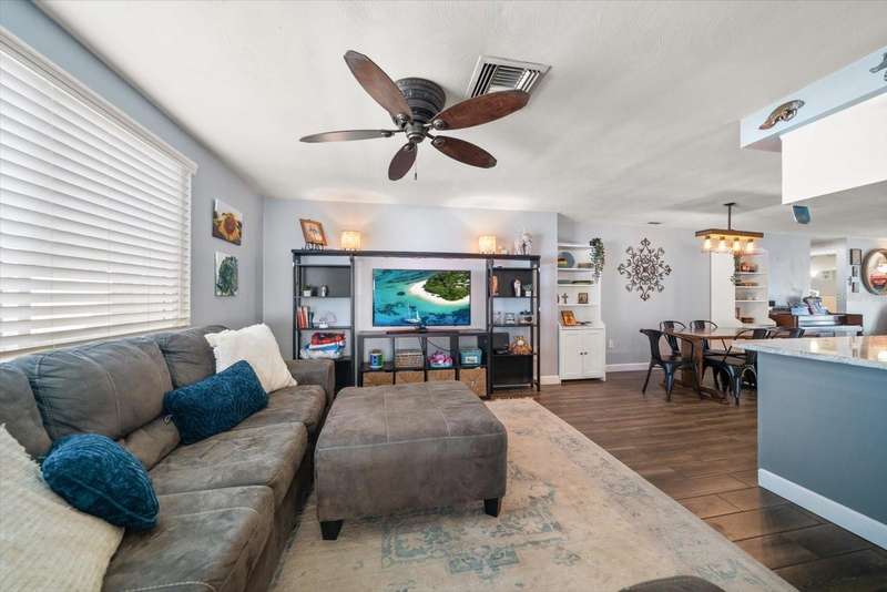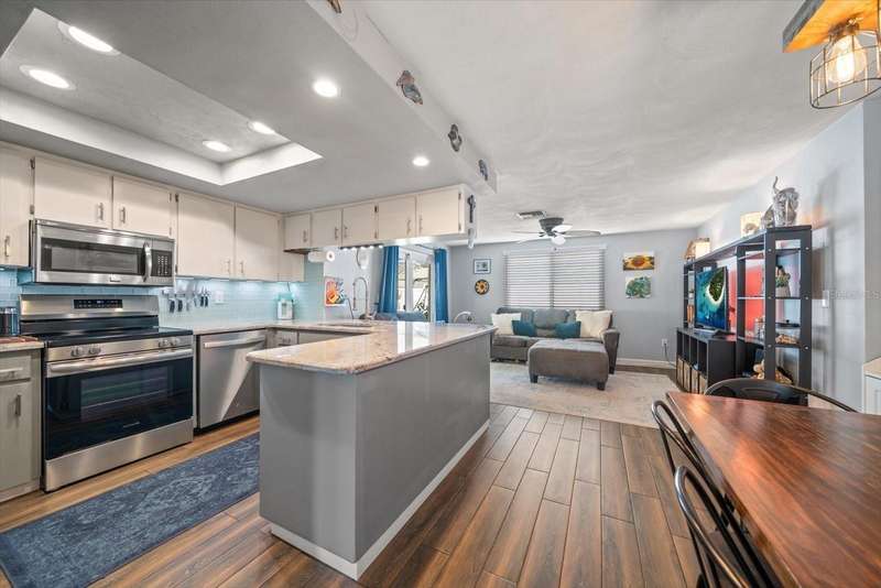 Located in the HIGHLY SOUGHT AFTER NEIGHBORHOOD of WOOD TRAIL VILLAGE, on a QUIET STREET WITH MINIMAL THROUGH TRAFFIC, this BLOCK CONSTRUCTION, NON-FLOOD ZONE, UPDATED & MOVE-IN READY, WELL-MAINTAINED SINGLE FAMILY HOME is ready for its new owner…YOU! Enter into FUNCTIONAL, OPEN PLAN kitchen, living and dining areas, which along with the SPLIT BEDROOM LAYOUT offers the perfect space for all. BRIGHT, NATURAL LIGHT throughout, with morning sun on the back lanai, gorgeous sunset skies to enjoy on the front patio and ATTRACTIVE GOVEE EXTERIOR LIGHTING to welcome you home after dark. PROPERTY AGES & STAGES (truly…move-in ready!) Brand new shingle roof (2025), fully renovated primary bath (2025), water heater (2025), garage door (2024), impact windows, living room slider, side garage door and lanai door to bath (all 2023), consistent ceramic wood-look plank tile throughout the home (2018), electric panel (2018), HVAC (2010). Stainless steel kitchen appliances include dishwasher (2025), range (2024), disposal (2023), refrigerator and microwave (2015). Superb location with EASY MAIN THOROUGHFARE ACCESS to…well everything! Shops, restaurants, parks, sports and recreation, airports, healthcare facilities, local markets, cultural events…and more! OPTIONAL $30 ANNUAL membership in Wood Trail Village HOA. Be sure to VIEW THE 3D TOUR link for an immediate walk through experience, schedule your in person visit and make this very special home…YOURS!!