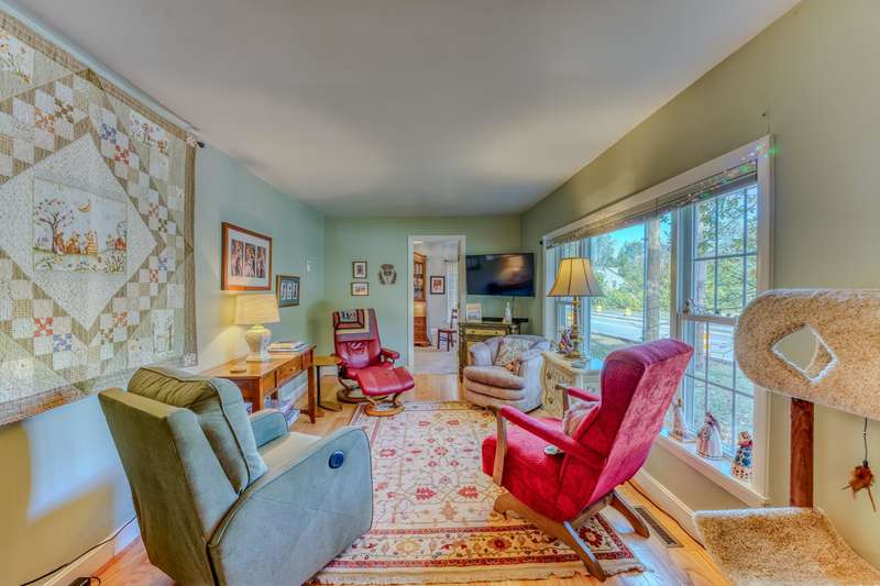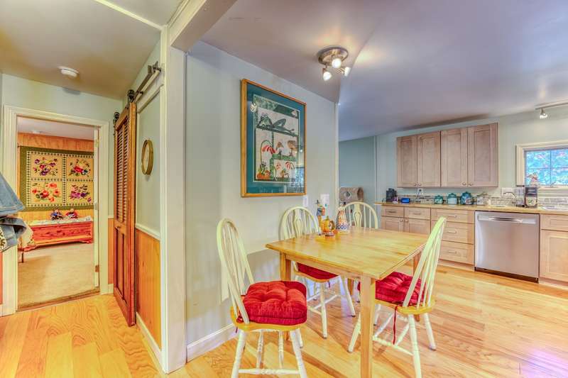 Right in the heart of Plymouth and walking distance to Plymouth public schools and Plymouth State University, this beautifully maintained and updated cape is just waiting for you to come make it your own! The main part of the home is all on one level, with easy access through a breezeway or from the attached garage, which offers space for two vehicles, with extra area for the laundry. From the breezeway one will enter into a handsomely updated kitchen, complete with butcher block counters, a moveable island, expertly laid out to perform your kitchen tasks, whether brewing coffee or tea or utilizing every surface! Flow from the kitchen into the living room, with a new oversized picture window letting in lots of natural light. A small study abuts, perfect for a bright and sunny corner office. The two bedrooms are cozy and accommodating. The current owner modified the entry from the breezeway to be open and inviting -- presently the space to the immediate right is a craft area, with closet for ample storage and a spot for a crafting or quilting table. The house also is home to an apartment above the garage: whether used as an extension of the house, in-law suite or utilized as a way to bring in rental income is up to you! It's a pleasant space, with full kitchen, dine-in nook, living room, full bathroom and bedroom. Tenney Mountain Ski area is 10 minutes away, and within 20-45 minutes of 5 other ski areas, in addition being close to major shopping and local fare!
