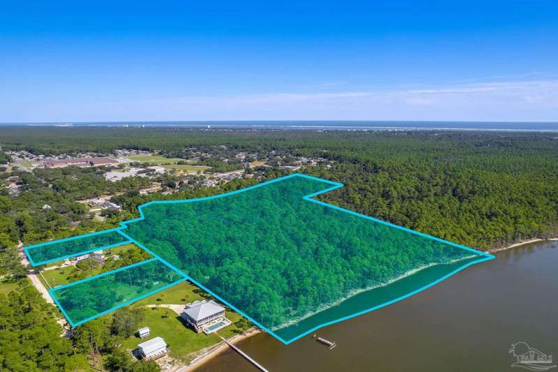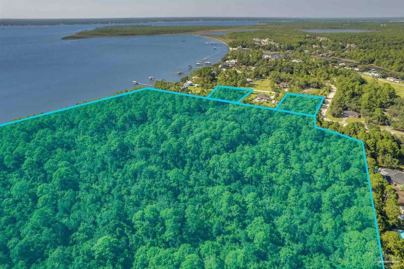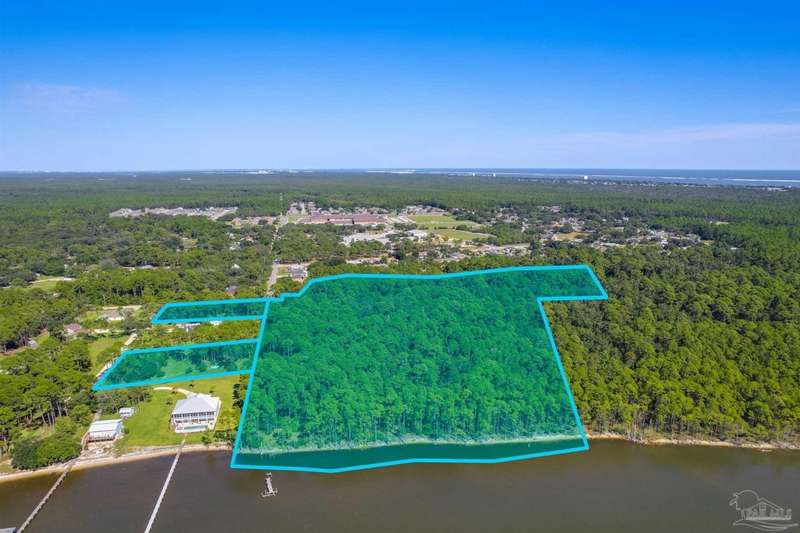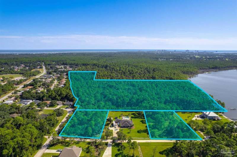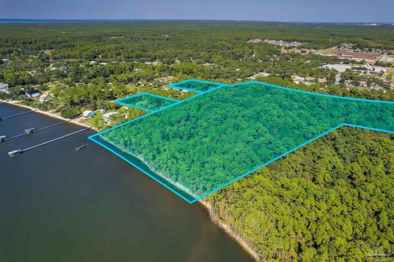 Rare opportunity! This 30.81-acre property along Perdido Bay in Perdido Key/Pensacola offers an incredible 850 feet of waterfront-making it one of the largest and most versatile land offerings in the area. Whether you're dreaming of building a private estate, family compound, or developing a resort-style community, the possibilities are endless. Developers will love the potential here: room for both waterfront and interior homes, plus space for amenities like a pool, pickleball courts, pavilion with fireplace, boardwalks, trails, and a community beach with picnic area. The property is as beautiful as it is expansive, with mature trees, native vegetation, and abundant wildlife creating a peaceful natural setting. The wide bay frontage is ideal for boating, fishing, kayaking, or simply relaxing while soaking in the views and coastal breezes. Just minutes from Perdido Key's sugar-white beaches, Orange Beach, and the Gulf of Mexico, you'll also enjoy easy access to NAS Pensacola, downtown Pensacola, and nearby parks like Tarkiln Bayou Preserve with miles of hiking and bird-watching trails. This is truly a rare find-vast acreage, significant waterfront, and unmatched natural beauty all in one location. Whether kept as a private sanctuary or transformed into a thoughtfully designed community, this land is a blank canvas ready for the vision of its next owner. Totaling three parcels - giving you multiple access points. The Alabama Pass is just a 30-minute boat ride away, giving you endless access to both inshore and offshore adventures. Don't miss your chance to secure a remarkable piece of Perdido Bay.