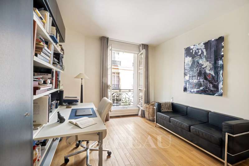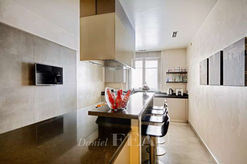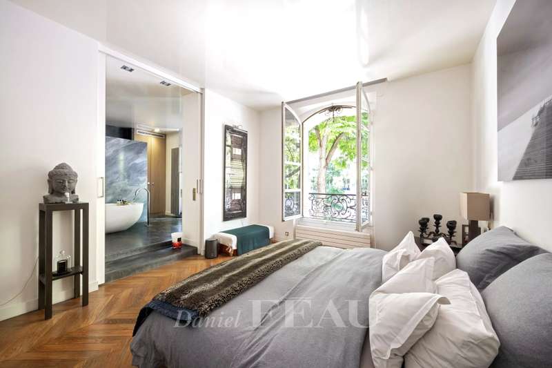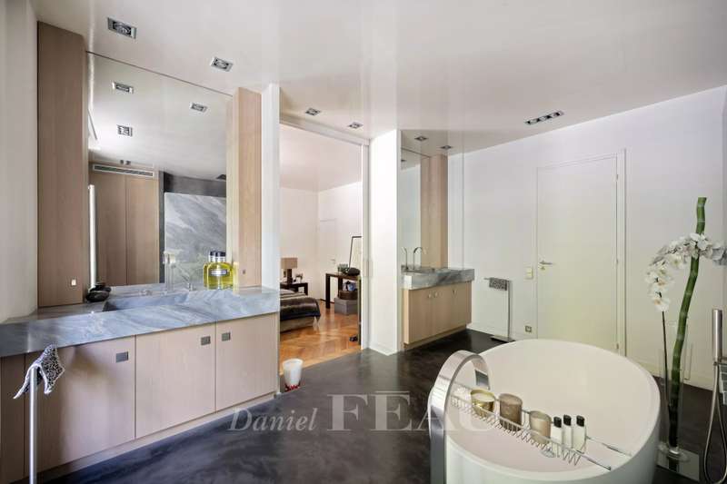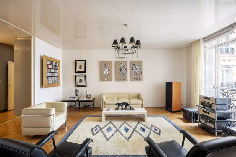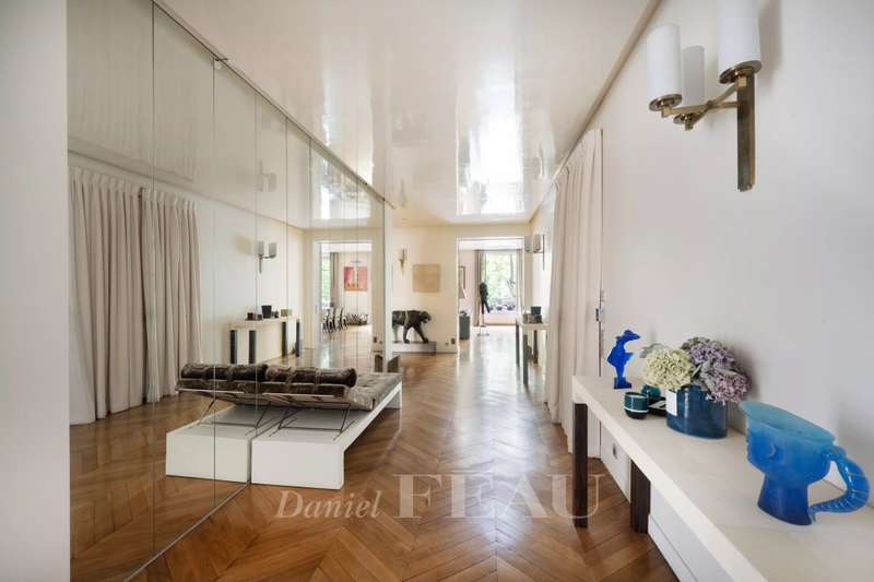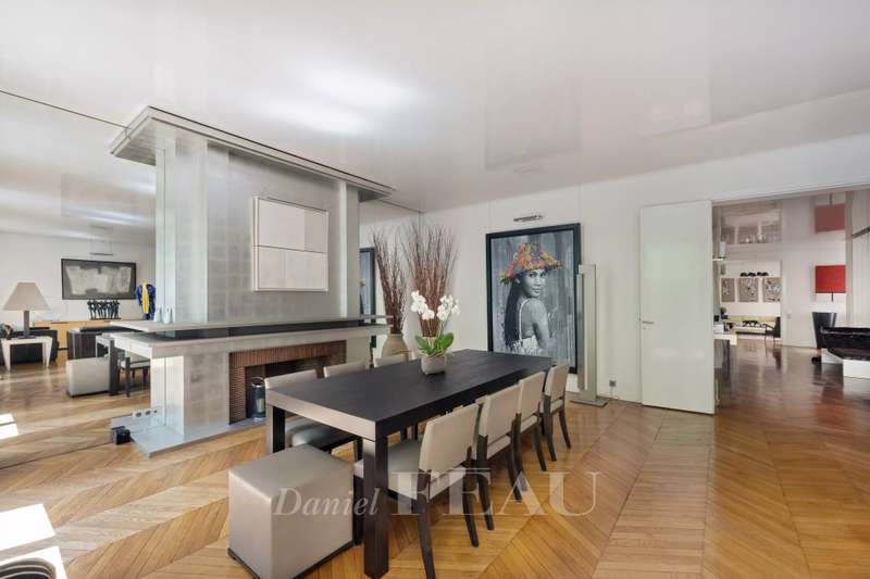 Wagram/Ampère neighbourhood. This sunny 257 sqm apartment on the 1st floor of a very well-maintained early 20th century building with a lift has been meticulously renovated throughout. An entrance hall leads to a bright double living/reception room, a dining room, a kitchen with dining facilities and a pantry, a master suite with a bathroom, a dressing room and a separate wc, a bedroom with a shower room, two further bedrooms, a bathroom/wc, and a guest wc. Ample fitted storage space. With a cellar. Possible premises for a self-employed professional.