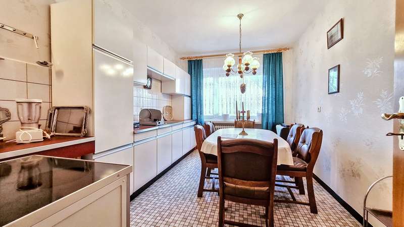 This attractive property is a detached house built in 1970, which has been continuously maintained and modernized to date. With a generous living space of around 160 m² and an extensive plot of approx. 1394 m², this property offers sufficient space for a variety of uses. The house consists of a total of four rooms, which can be used individually as bedrooms, living rooms or studies. The attic was converted in 2000 and offers expansion reserves that can extend the living space if required. A striking feature of this area is the strip parquet flooring which, in combination with the light from the large windows, creates an inviting ambience. For environmentally friendly heating, a modern central heating system was installed in 2015, ensuring an efficient heat supply. Worth mentioning is the 1970 extension, which offers additional space for the realization of personal living dreams. The property is equipped with two fully fitted kitchens, which offer a high level of functionality for everyday life. A practical laundry room also provides additional convenience. The garage belonging to the property offers the option of storing a vehicle. The conservatory deserves special attention, inviting you to spend relaxing hours regardless of the season. The fully fenced plot guarantees sufficient privacy and security. The landscaped garden offers space for design ideas and is complemented by a garden shed, which can be used as additional storage space or for hobby projects. This property is situated in a quiet, family-friendly location, which nevertheless offers good connections to the urban environment. This means you benefit from the peace and tranquillity that comes with living in a single-family home development, as well as the proximity to amenities, schools and leisure facilities. The spacious floor plan and the combination of functionality and individual scope for design are particularly impressive. Prospective buyers here have the opportunity to realize their own living space according to their own ideas and benefit from long-term investments in the substance of the house. For further details or to arrange a viewing appointment, please do not hesitate to contact us. Take the opportunity to see the advantages of this property for yourself. We look forward to hearing from you and introducing you to this compelling residential offer.