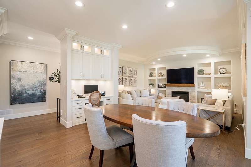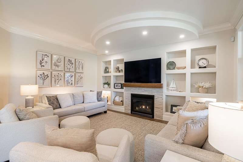 Stunning and timeless 2-storey with basement home on a quiet, tree-lined no-thru street in Rosemary Wynd. Fully renovated throughout with new hardwood floors, gourmet kitchen with white shaker cabinets, quartz counters, island, high-end S/S appliances, and access to a covered deck with outdoor gas fireplace and built-in BBQ. Spacious living and family rooms plus a versatile den/bedroom on the main. 4 bedrooms up including a luxurious primary suite with spa-like ensuite. Bright above grade basement with full kitchen, huge rec room, bedroom, bath, storage, and workshop (possible extra bedroom). Central A/C, irrigation, and a prime location near Rosemary Heights Elementary and Grandview Heights Secondary. Don't miss this one!