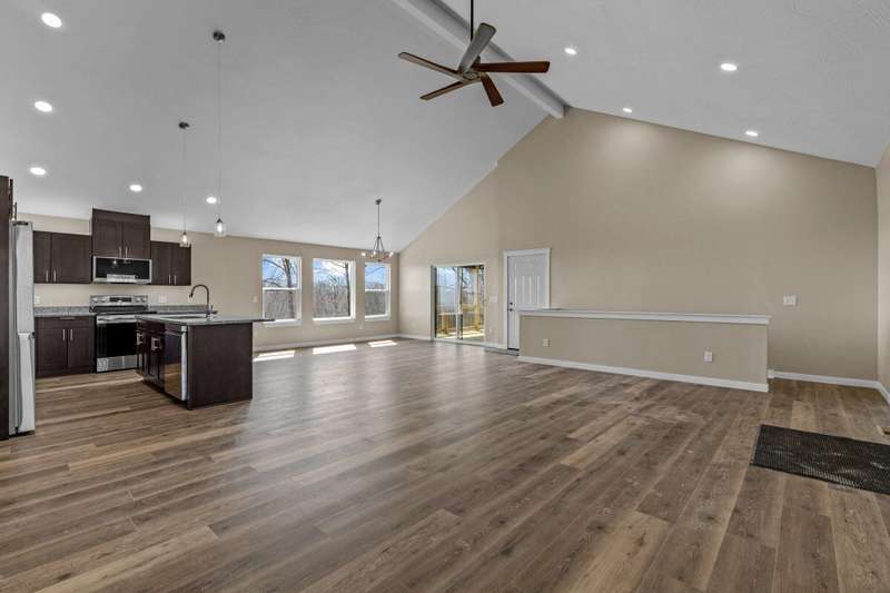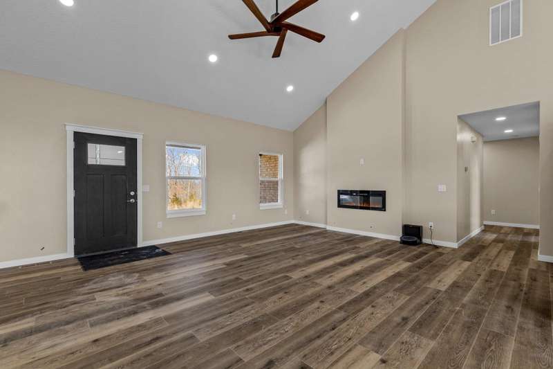 NEW HOME!!! MOVE-IN READY!!! Discover the perfect blend of modern living and timeless charm in this stunning contemporary ranch home that sits on a 1+ acre lot just minutes away from shopping and restaurants. The open family room with high ceilings that includes an electric fireplace is a must see! Don't miss the stylish kitchen with a walk-in pantry and a central island that creates an inviting atmosphere for gatherings and everyday living. With 4 spacious bedrooms, a separate office, three sleek bathrooms, an additional Mother-in-Law Suite that is equilped with a kitchenette area, and a convenient two-car over-sized garage makes this the perfect place to call home. This property also offers stainless steel appliances including a refrigerator, security cameras, granite counter tops, a Wi-Fi thermostat, on demand water heater, water softener, and modern style lighting fixtures. Enjoy the extra space in the heated and cooled John Deere Room with access to the crawlspace for additional storage and a storm shelter area for your safety. Step out on either of the rear decks and enjoy the tranquility of the beautiful wooded outdoors and spectacular views. This home is almost completed and will be move in ready within a few weeks! Call today to schedule your private showing!