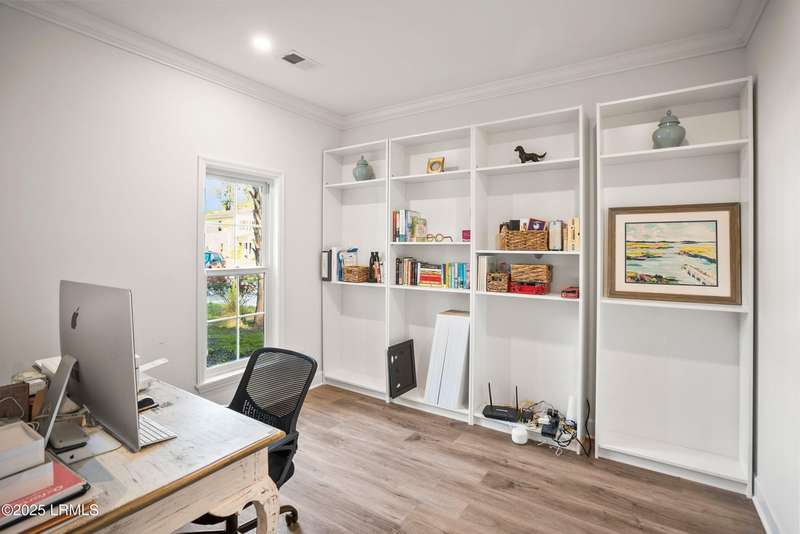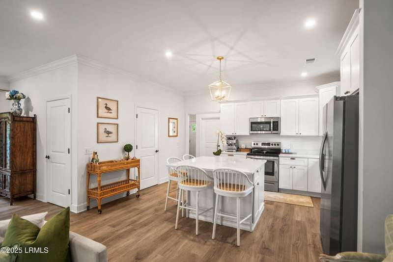 Built in 2021 by renowned local builder Allen Patterson, this 3BR/2.5BA home is in like new condition. Designed with quality finishes throughout, the open-concept first floor features a spacious living and dining area, a beautifully appointed kitchen, a powder room, and a flexible office/den. Upstairs offers a large primary suite, two additional bedrooms, and a full bath. Enjoy peaceful pond views, a detached one-car garage, and a central location close to shops and restaurants. The home is less than 7 miles to Historic Downtown Beaufort, 5 minutes to MCAS and 15 minutes to Parris Island. Move-in ready and full of Lowcountry charm! This material is based upon information, which we consider reliable, but because it has been supplied by third parties, we cannot represent that it is accurate or complete, and it should not be relied upon as such.
