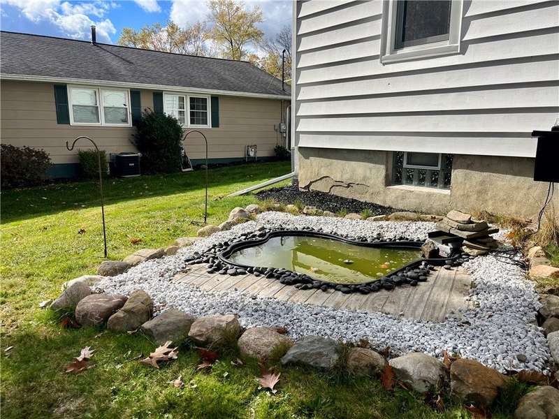 The perfect home for a low-maintenance lifestyle! This home features two bedrooms, a bath and a half, and all your easy living needs on the first floor. Step into a charming living room with a gas-powered brick fireplace that creates a cozy atmosphere for relaxing evenings. The open floor plan includes a dining room, kitchen, office, and partial powder room, all on the first level. Well-maintained inside and out, the home offers new windows and doors (2023), new flooring throughout most of the house (2025), and new Trex decking at the front and back (2023) that enhances curb appeal and provides an ideal space for entertaining, overlooking the backyard and a newly installed Koi pond. Leaf Gutter guard for low maintenance installed (2023). Park your car on the freshly paved driveway (2023) or store it in the one-car garage to stay protected from the elements. A new generator (2023) and a water pressure pump (2023) Ensure Optimal performance at all times. Move in and enjoy many worry-free years ahead!