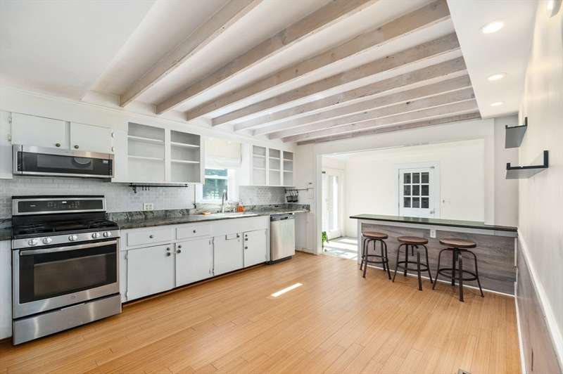 This charming 7-room Cape Cod home is ideally located within walking distance to parks, schools, shops, restaurants, and the commuter rail, in a safe, family-friendly neighborhood. It offers the perfect blend of convenience and charm. Features include a bright eat-in kitchen with new granite countertops that opens to a sunny sunroom with backyard views, a cozy living room with a fireplace, 2 full baths, and hardwood floors throughout. Additional highlights include a full basement, one-car garage with a newly paved driveway, and recent updates such as a new roof, siding, heating system, and central AC. The outdoor living space boasts gardens, fruit trees, and easy-to-maintain perennial blooms. A brand-new septic system will be installed prior to closing.