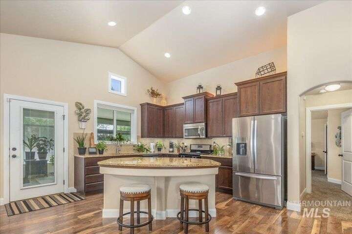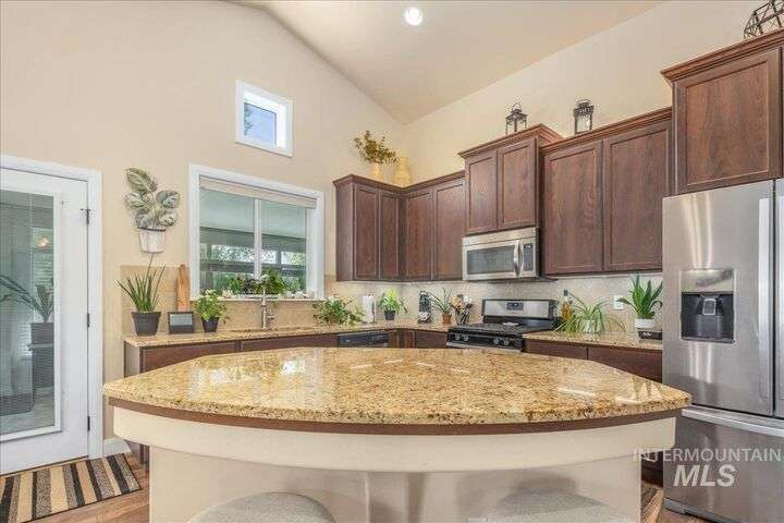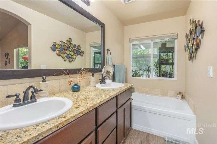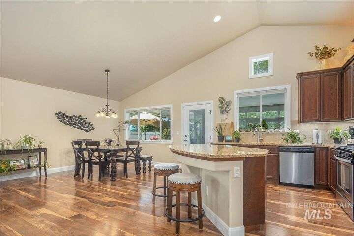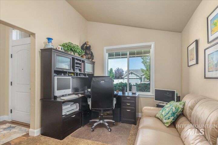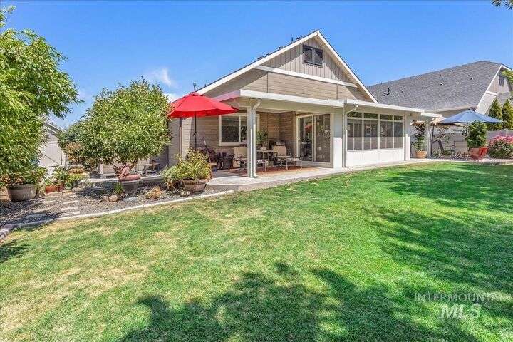Don't miss this beautifully maintained 3 bed plus office, 2 bath home located in Eagle’s desirable Preserve neighborhood. The spacious kitchen features granite countertops with ample storage and workspace. The private master suite features two closets and a beautiful new walk-in shower. The fully finished 3-car garage is a standout feature—epoxied, climate-controlled, insulated and perfect for hobbies, storage, or extra workspace. Enjoy Idaho’s seasons year-round in the light-filled sunroom or relax outside on one of two patios. The backyard is a gardener’s dream with mature fruit trees, raised beds, a storage shed, and lush, established landscaping. Inside, the open floor plan offers spacious living and dining areas ideal for everyday living and entertaining. Nestled in a quiet neighborhood with community pool, fishing ponds, walking paths, parks, and close proximity to Eagle amenities, this home combines modern comfort with outdoor charm.