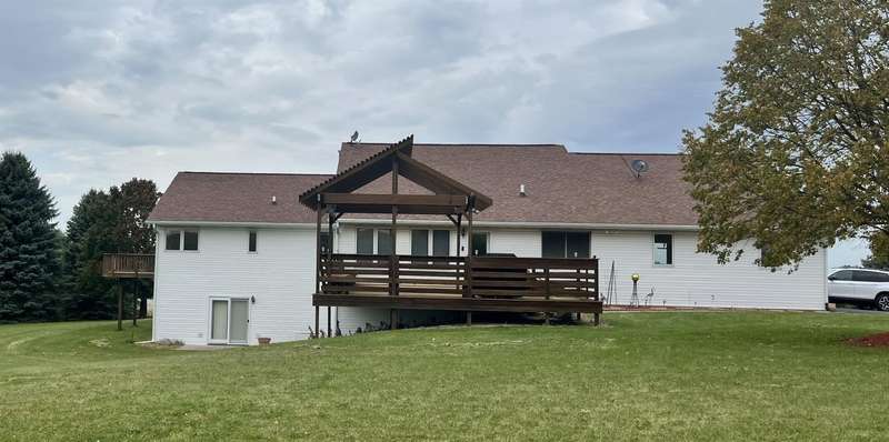 Gleaming hardwood floors extend throughout the main living space with neutral walls to provide a canvas for your personal style. The kitchen features granite countertops with ample storage and workspace. Additional space off the dining room with large windows overlooking trhe expansive backyard and deck with pergola. The primary suite is a sanctuary of its own with private deck, walk-in closet, ensuite bathroom. The remaining bedrooms are equally inviting with generous closet space and large windows. A bonus room in the lower level with a kitchenette offers endless possibilities. Additional work room off the kitchen and plenty of storage in the attached 3 car garage and detached 3 car garage. This house comes with a Generac generator so you are never without power. This property is a rare opportunity, schedule a viewing and make this exeptional home yours.