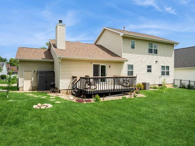 Welcome to this beautifully maintained 2-story home in the heart of Marion! Offering an ideal blend of updates and original charm, this home features 3 bedrooms on the upper level and 3.5 bathrooms, with a bathroom on each level for ultimate convenience. The main floor boasts hardwood floors, two separate living areas, a formal dining room, and a recently remodeled half bath (2023). The kitchen is spacious with a breakfast bar and room for a table. The dishwasher, fridge, and microwave are only 1 yr old! Upstairs, you'll find all three bedrooms, including a spacious primary suite with an en-suite bath and walk-in closet. All carpeting was replaced in 2022, as well as new paint through the entire home. The basement is fully finished creating room for entertaining, there's 2 additional spaces that could be used for storage or your own home gym! Have peace of mind knowing the major costs have been taken care of; A/C is new as of 2022 and the roof was replaced in 2021. Enjoy time outside on the newly built deck (2024) overlooking the large, fenced backyard. The fresh landscaping and the addition of three new trees add great curb appeal. If these features weren't enough, the final selling point is the attached 3-stall garage, with extra space for storage or a workbench. Dont miss the opportunity to own this well cared for home in LinnMar school district!
