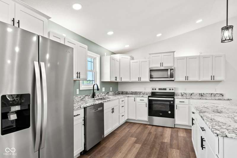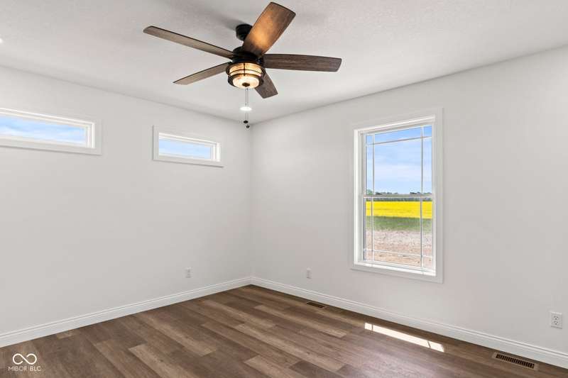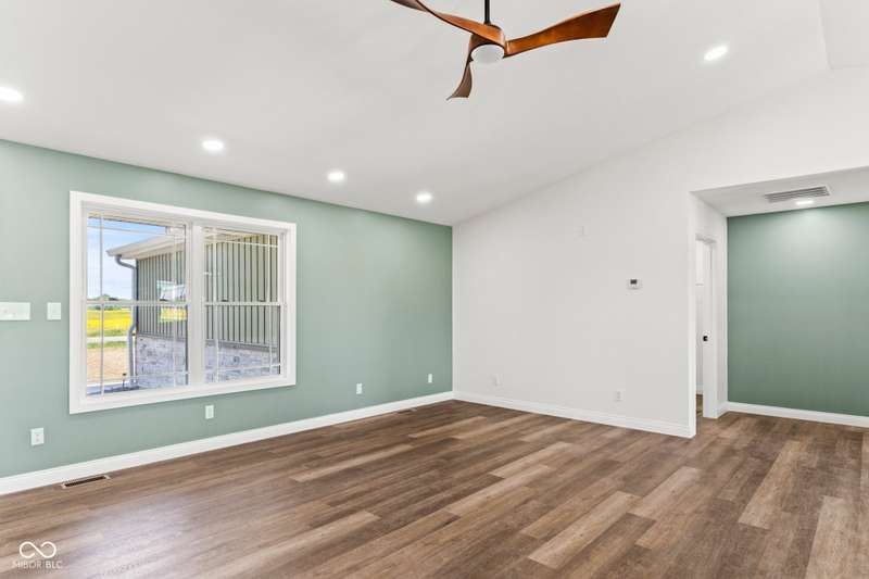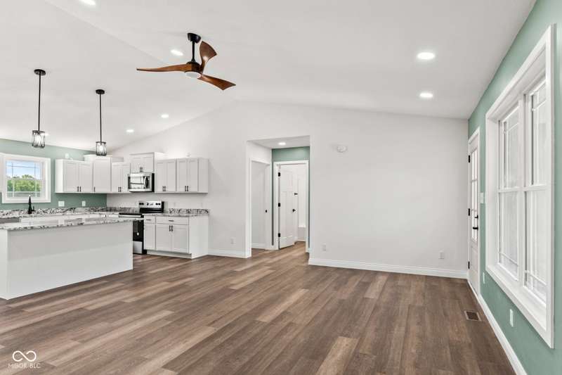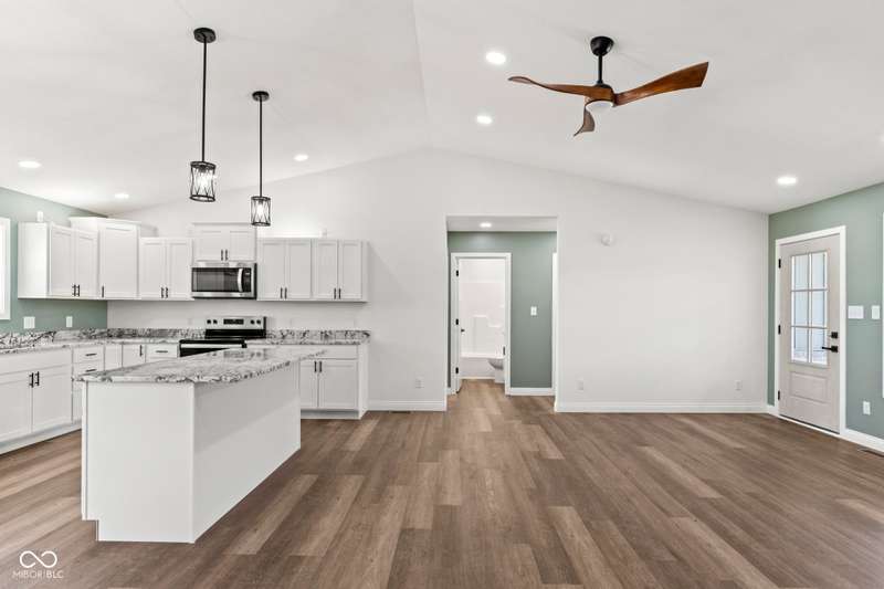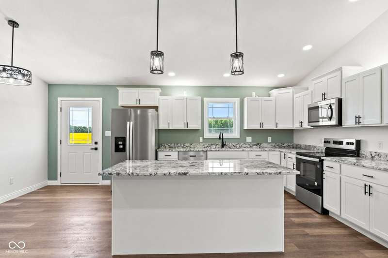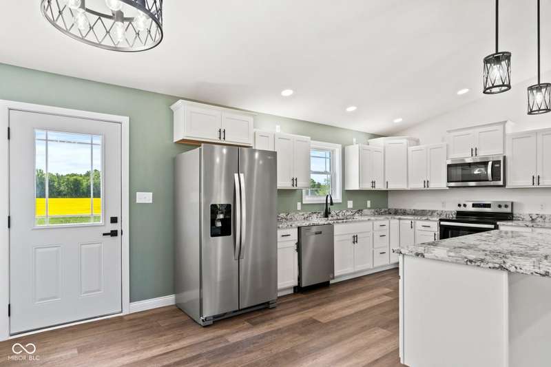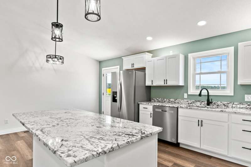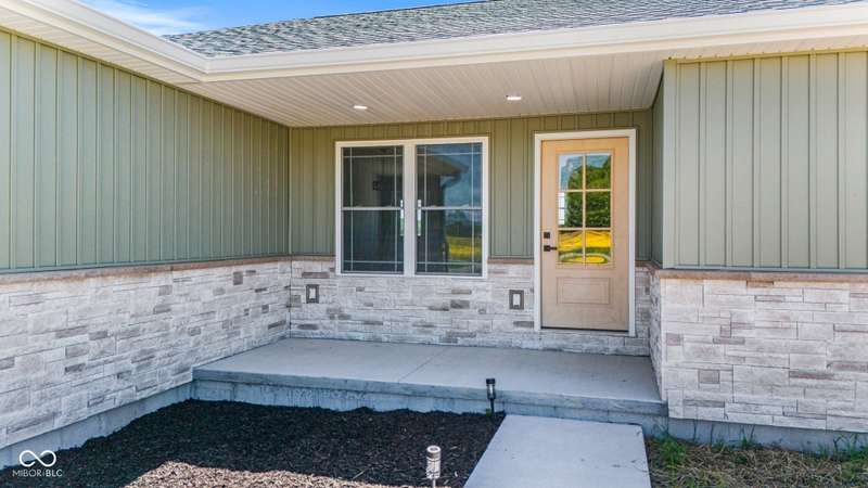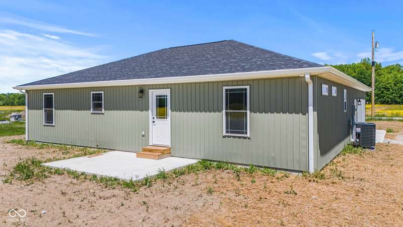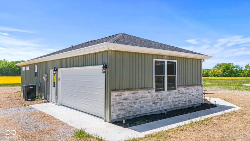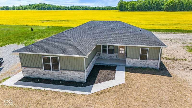 Welcome to your brand new home in the heart of DuPont, Indiana! This stunning new construction offers 1,422 square feet of thoughtfully designed living space and the peace and quiet of true country living. From the moment you arrive, the charming board and batten siding paired with striking white stone accents give this home impressive curb appeal and timeless character. Inside, you'll find a large, open-concept living room, kitchen, and dining area-perfect for entertaining or enjoying cozy nights in. Natural light pours in, highlighting the clean lines and functional layout of the space. This home features three generously sized bedrooms and two full bathrooms, each with beautiful finishes and attention to detail. The primary suite includes a spacious bathroom, while the secondary bedrooms share a well-appointed full bath. Every inch of this home is designed with comfort and functionality in mind. Out back, you'll find one of the best features-a large concrete patio overlooking a stunning, peaceful view. Whether it's morning coffee or evening sunsets, this view is the kind that makes you want to slow down and stay awhile. It's truly one of the most special spots on the property. If you've been looking for a brand new, move-in ready home surrounded by natural beauty and quiet charm, this is it. Brand new homes like this are rare in DuPont, and this one won't last long. Come see for yourself what makes this one so special!