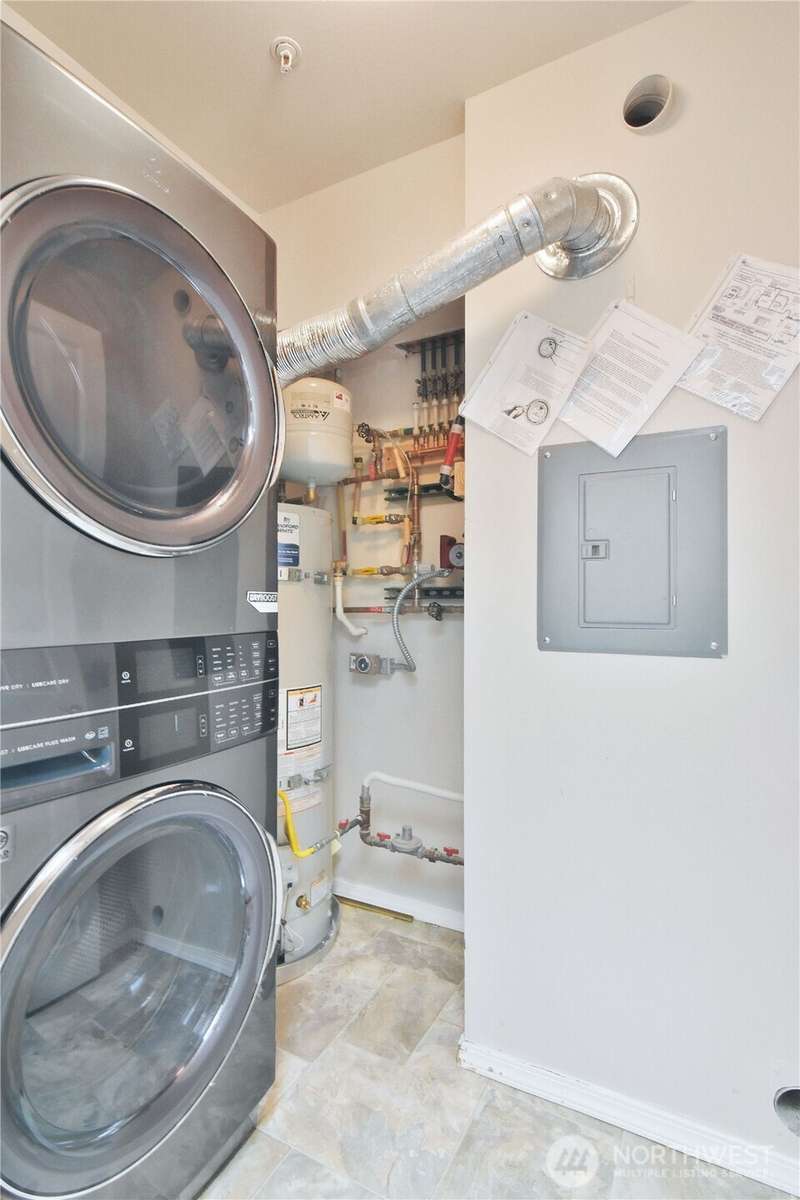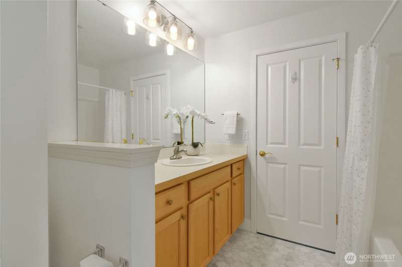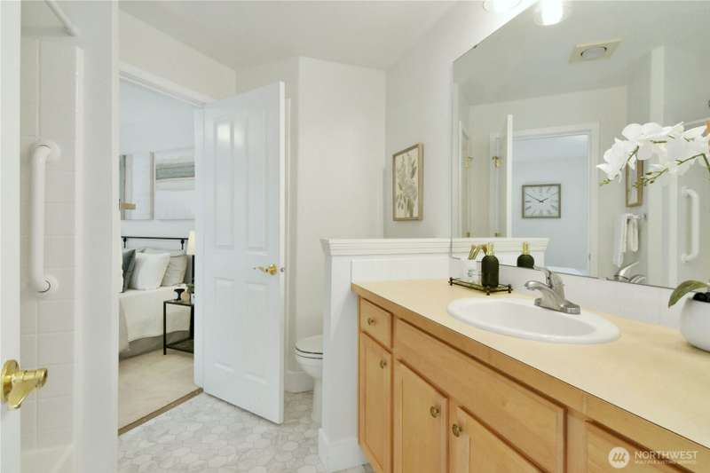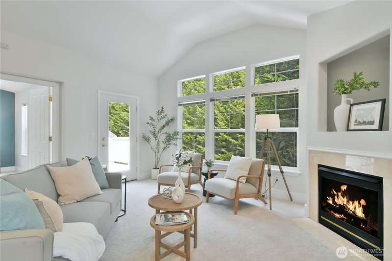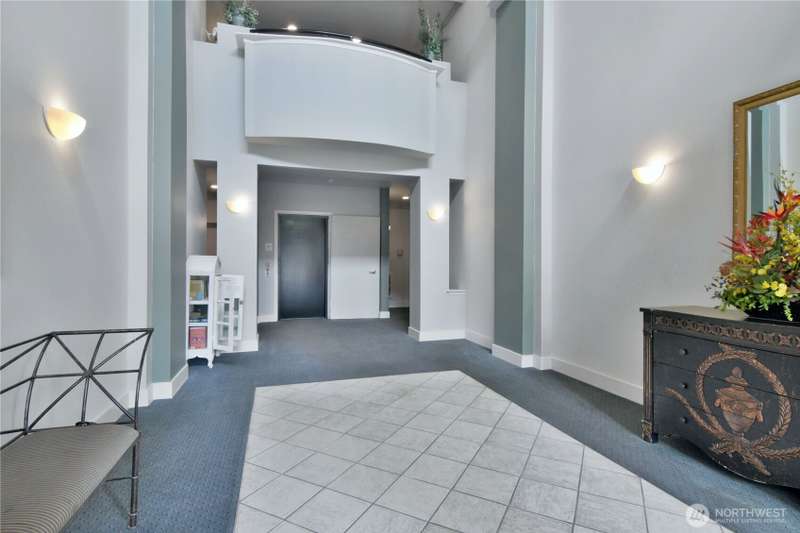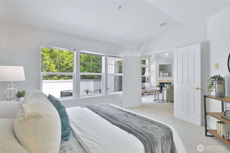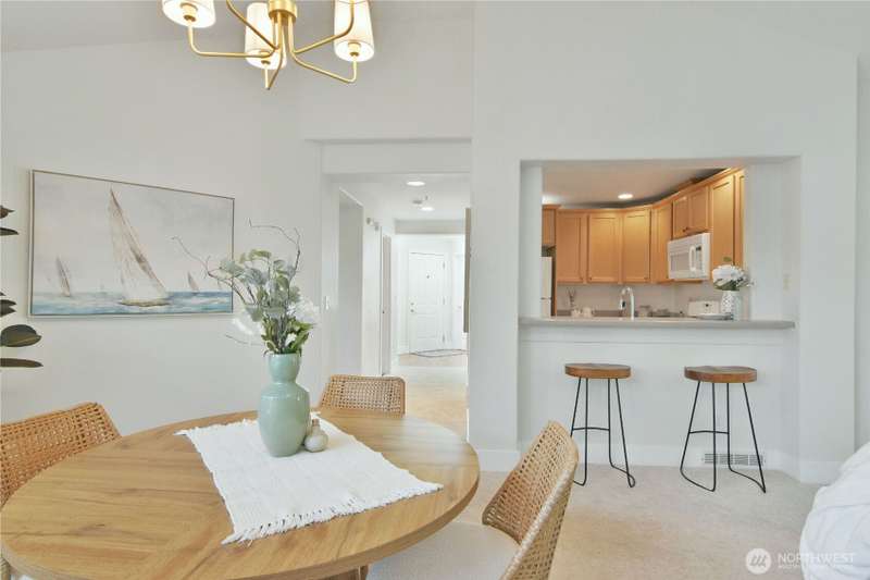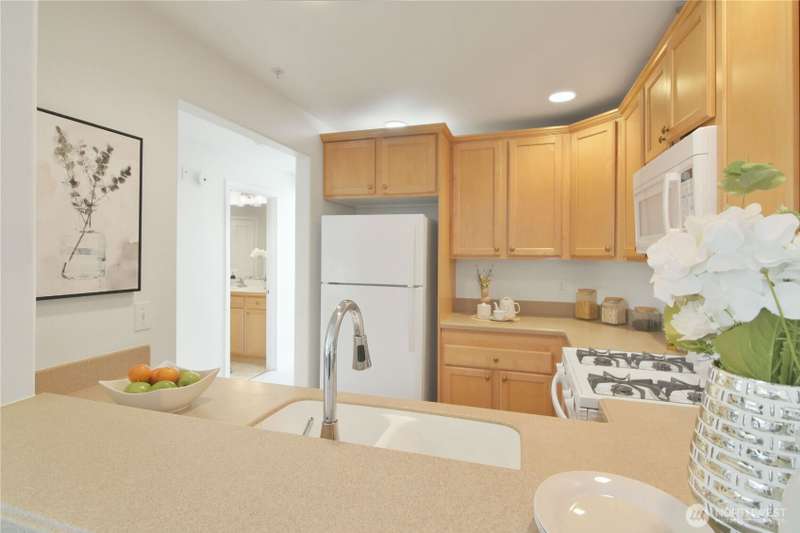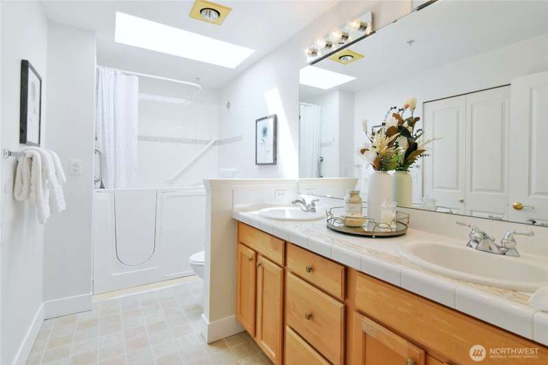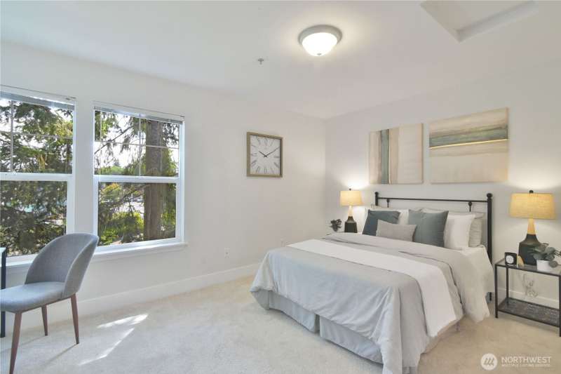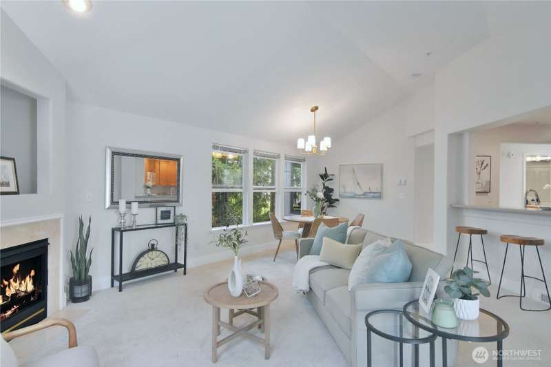 RARE Sundrenched top-floor corner unit with skylights in the desirable gated Montclair community at Five Corners! This bright home offers accessible, stair-free living with elevator access, an accessible bathroom, gas cooking, a cozy gas fireplace, and brand-new in-unit laundry. Enjoy peaceful treetop views from your private balcony, plus a storage unit and two covered parking spots in the secure garage. Plenty of guest parking. With no rental cap, no pending assessments, and HOA dues covering water, sewer, garbage, security, earthquake insurance, and more, this is carefree condo living. Just minutes from downtown Edmonds, the waterfront, and Five Corners amenities!