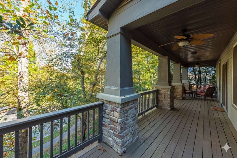 Welcome to your secluded mountain retreat at 4 Yellow Owl Drive, perfectly nestled within the highly SOUGHT-AFTER, PRESTIGIOUS master-planned community of Biltmore Lake. House sits on elevated tree-covered hill with private driveway veering around. This spacious home delivers the private, woodsy ambiance of the Blue Ridge Mountains, complete with a seasonal mountain view and an unparalleled, amenity-rich lifestyle. The property is designed for year-round mountain enjoyment, featuring 4 outdoor living spaces with over 900 square feet of deck and porch space, including a rear deck and a generous covered front porch. Three decks are covered and have fans. Even the primary suite has a private covered porch. These multiple, private outdoor areas create a true sanctuary for relaxing, entertaining, and taking in a tranquil wooded setting.Inside, the home provides exceptional functionality and comfort with attractive granite countertops in the kitchen. The main level offers a flexible floor plan with a formal dining room, a living room that flows into a sitting room with a gas fireplace, and a dedicated office or library, perfect for remote work. The second level features four sizable bedrooms, including the large primary bedroom suite with walk-in closet and private covered deck. The bonus room is massive and currently serves as another bedroom, but would also be perfect as a home office, home gym, or media room.Access to the crawl space is through an outside door below the front deck, and the entry section has a poured concrete slab with stand-up height storage. This area is ideal for storing bikes, kayaks, and seasonal decor.Owning a home here means exclusive access to a premier, active Western North Carolina lifestyle centered around 62-acre Enka Lake. The lake is the community's heart, inviting residents to swim from the sandy beach, enjoy fishing for white bass, crappie, sunfish, and smallmouth bass, or partake in non-motorized boating. The boathouse provides a convenient place to access and launch kayaks, canoes, paddleboards, making watersports easily accessible. Beyond the lake, the community boasts an extensive network of over six miles of dog-friendly hiking and walking trails that wind through the hardwood forests, connecting different sections of the neighborhood and offering endless opportunities for outdoor exploration and exercise, including four dedicated campsites. The lakeside clubhouse serves as a charming social focal point with a cozy lodge atmosphere, fireplace, and community library. For sports enthusiasts, Biltmore Lake offers two hard-surface tennis courts (doubling for Pickleball), a full-length, lakeside basketball court, and multiple playgrounds throughout the neighborhood for younger residents. This home offers the rare balance of a secluded, mountain-style setting and a thriving, amenity-rich community, all while being just minutes from the dining, shopping, and culture of downtown Asheville. Don't miss the chance to make this exceptional mountain property your own. Furnishings are negotiable.