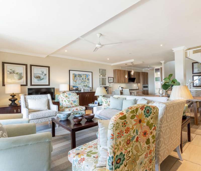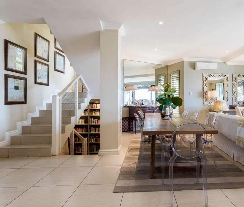 Impeccably maintained triplex in a beautiful upmarket gated estate up the North Coast. Bordered by 3km of unspoiled beach to the front and pristine forest behind the estate - residents are spoiled to be able to enjoy both whale watching and birding experiences. This 3 bedroom trilplex has the master bedroom, walk in closest and en-suite situated on the top floor with the most sensational sea views. Level 2 has a state of the art Italian imported "Chefs Kitchen". Which includes 2 Smeg ovens, Smeg 5 plate gas hob, soft closing, handle-less drawers, touch lighting, warming drawer. A nice sized scullery with lots of storage space. The dining room and lounge flow from the kitchen and out onto the covered deck with its uninterrupted sea views. Downstairs has 2 bedrooms, both en-suite with air cons and fans and a dedicated study. The Estate has a communal pool and direct access down to the beach, with a whale watching platform for residents to sit and enjoy the view. Blythdale is an easy 30 min drive to King Shaka airport and a short distance to Ballito and all its amenities.