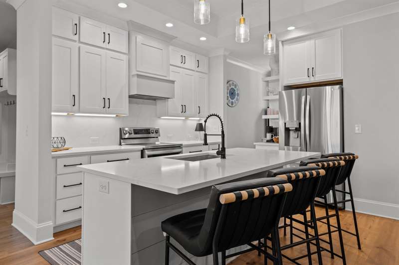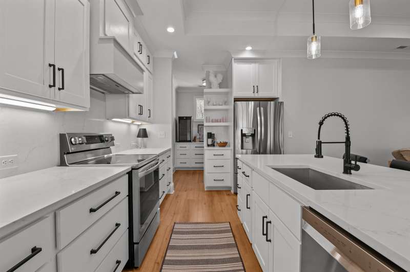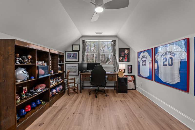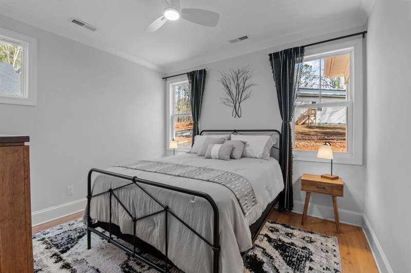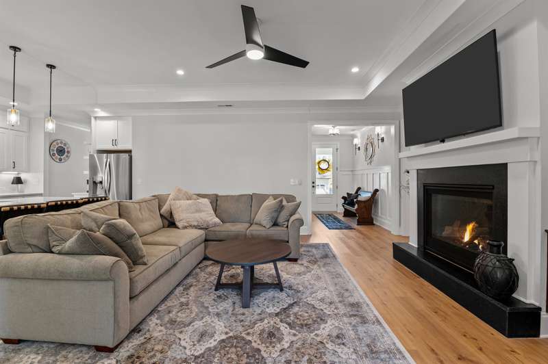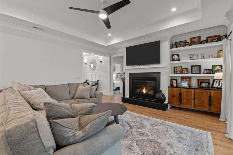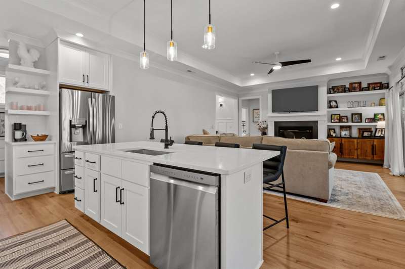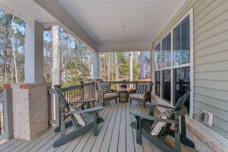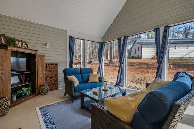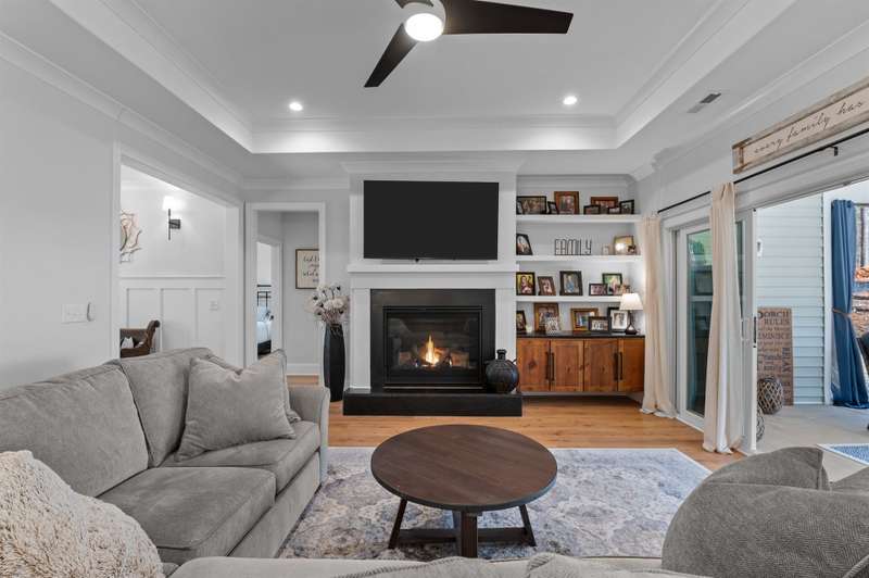 Step into timeless elegance with this gorgeous Craftsman Ranch home, designed for comfort and style. A Spacious open front porch welcomes you into an inviting Foyer and cozy Reading Room and fireplace. The open Living Room features sliders leading to a massive Screened Porch, perfect for indoor-outdoor living. The gourmet Kitchen boasts quartz countertops stainless steel appliances, and a walk-in Butler's Pantry space. The split-bedroom layout offers privacy, with a luxurious primary suite featuring vaulted ceiling, triangular windows, and abundant natural light. The spa-like primary Bath showcases marble flooring and stunning marble shower walls. Additional highlights for the home include a separate Laundry Room with sink, two generously sized Secondary Bedrooms, and a step-up Bonus/Flex Room that can also be used as a Home Office. Refrigerator, Washer and Dryer are all staying! Outside, the walk-in crawl space also provides ample storage. Located in a gated lake community with beaches, boating, fishing, and pickleball. Each community household also receives two free golf memberships at The River Golf Course! Don't miss this incredible opportunity- schedule your private showing today!