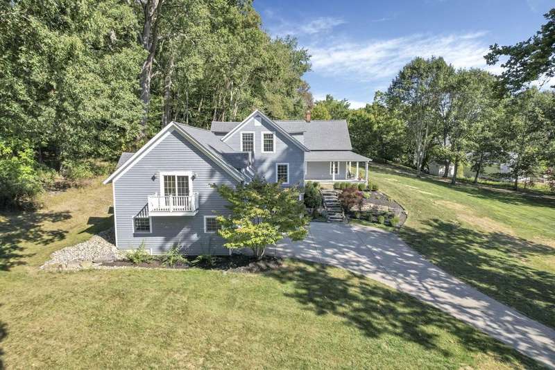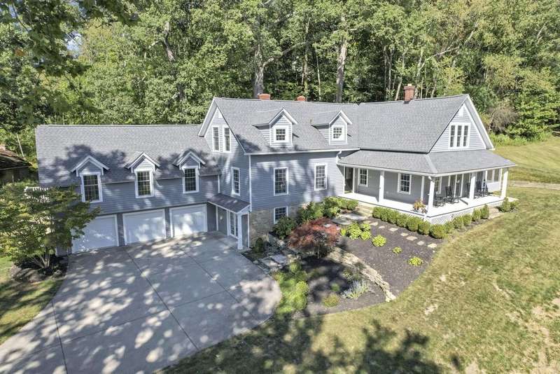 Situated on .80 acres in Bryn Du Woods, this fantastic home blends classic craftsmanship with modern updates and conveniences. Overlooking a neighboring pond and adjacent to Granville's historic Bryn Du Mansion, the property offers beautiful views in every season. A wraparound front porch, screened porch, and professional landscaping enhance its curb appeal and outdoor living.Inside, an inviting 2-story foyer introduces the true character and charm of this home, highlighted by hardwood floors, abundant windows, French doors, two wood-burning fireplaces, and lovely woodwork. The spacious kitchen opens to a large eating area, ideal for gatherings, and is complemented by a sizable mudroom and generous pantry. Five bedrooms include a main-level primary en-suite with vaulted ceilings, a private bath, walk-in closet, convenient laundry, balcony, and a sauna. Additional rooms include the living room, dining room, and office/flex room. Natural light pours in through expansive windows and patio doors throughout.The finished walkout lower-level features new LVP flooring ('25) with a new concrete base ('24), offering versatile living space. A 3-car garage includes new garage doors ('25).Beautifully maintained, this home was originally built as the gardener's residence for Bryn Du Mansion, offering unique character and history along with thoughtful updates: newer roof ('20), added attic insulation ('20), ductwork ('20), tankless water heater ('20), electric hot water heater ('24), front door ('22), two patio doors ('22), several replacement windows ('22), furnace ('21) and AC ('19). Further improvements include basement waterproofing, sump pump, and perimeter drainage.Fantastic location near community events, walk/bike trails, and Downtown Granville.