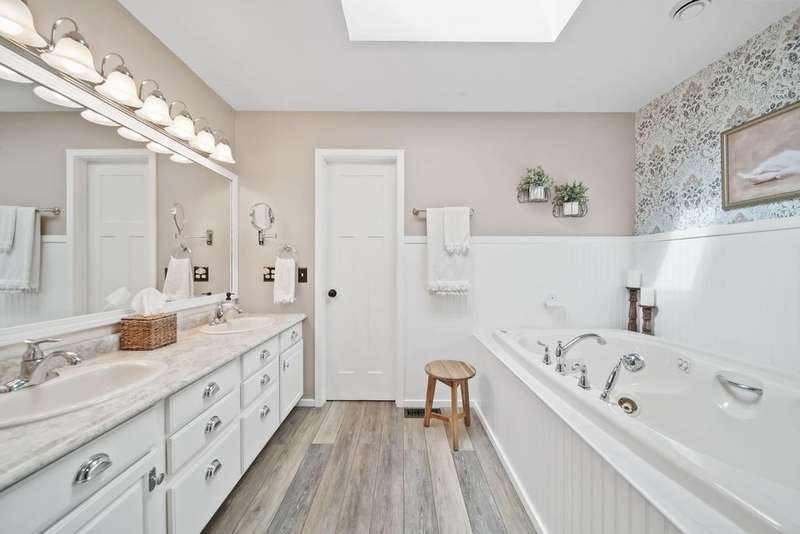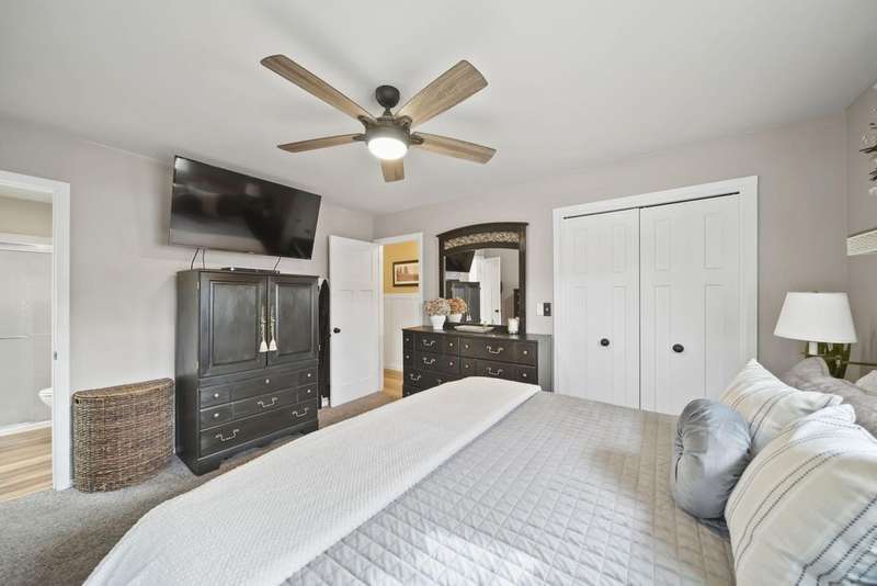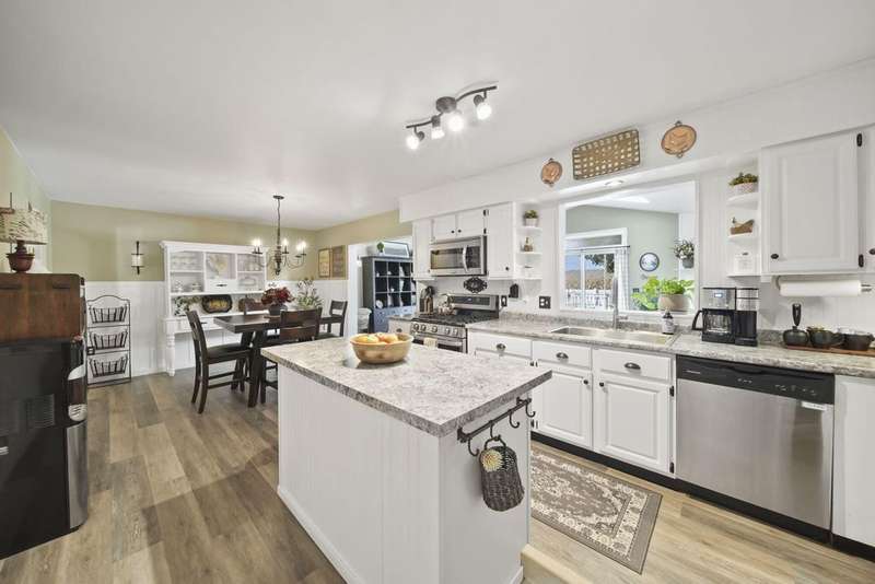 Completely Remodeled Ranch in Western Schools! This stunning 3-BR, 3 BA ranch has been completely remodeled and is ready for you to move right in! Enjoy relaxing on the beautiful front porch w/stamped concrete floor overlooking the scenic front yard & open field. Inside, you'll find an updated kitchen w/island and pantry, along with all new flooring, paint, fixtures, doors, lighting, and stylish board-and-batten walls throughout. The inviting living room features a gas fireplace w/built-ins, the spacious vaulted family room also includes a cozy gas fireplace & skylights along with a slider leading to the deck. The primary suite offers double sinks, walk-in shower, whirlpool tub, and a generous walk-in closet for ultimate comfort. A bright main-level laundry & a basement with a new full bath, sauna, and space ready to finish to your specifications. New windows and roof w/warranty. This home combines quality updates and magazine-worthy style in a great location. It is a must see!