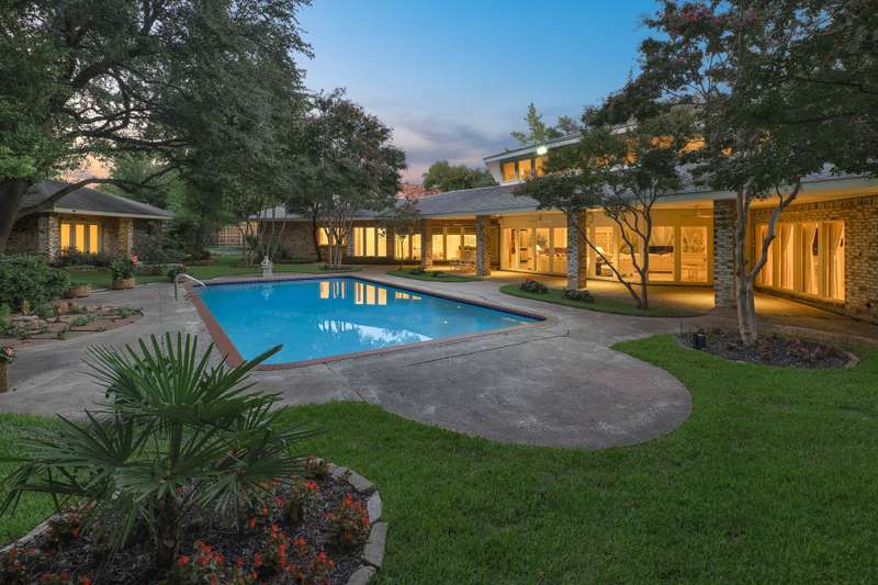 Offered for the first time since 1985, 5045 Lakehill Court is a rare piece of architectural historydesigned and built as the personal residence of noted Dallas developer Hal Anderson. Set on a secluded, one-acre cul-de-sac lot in the heart of Preston Hollow, this 1973 mid-century showcases the hallmarks of Andersons iconic design and impeccable build quality: single-story layout with dramatic entry, extensive marble flooring, walls of glass, and seamless flow between indoor and outdoor living. In addition to the 6,881 sf main house, is an updated 600 sf, air-conditioned pool house with full-bath, as well as a 900+ sf updated guest quarters--with two bedrooms, full-bath, living area and kitchen, so a total of 8380+ sf of air-conditioned space. An additional full-bath is included in the 3 car garage. At the heart of the home, the expansive great room is a showstopperanchored by a soaring two-story bookmatched marble fireplace, beautiful white porcelain floors, and floor-to-ceiling windows that flood the space with natural light and overlook the serene backyard. Perfect for entertaining, the open layout opens from the great room to mirrored dining room and wet bar. The north wing of the home includes 3 generously sized bedroom suites. The primary suite features a sitting area, dual baths and walk-in closets and access to the patio. Each secondary bedroom includes a private bath and walk-in closet. A fourth bedroom suite sits on the opposite side of the home and includes its own private courtyard and full-bath, while the fifth bedroom with full-bath is ideal for guests. Designed for entertaining, the home opens to a wraparound terrace, beautiful pool, and lush landscaping offering exceptional privacy. The numerous old-growth Live Oak specimen trees make this setting unique! This remarkable estate is a timeless expression of Hal Andersons signature style, brought to life in a private and secluded setting thats as livable today as it was visionary in its time.