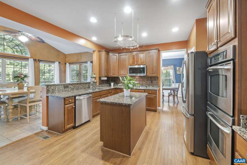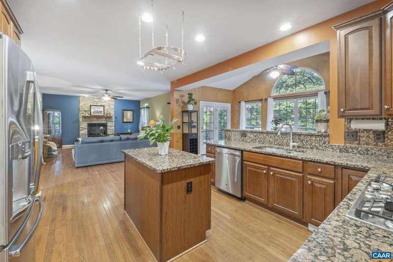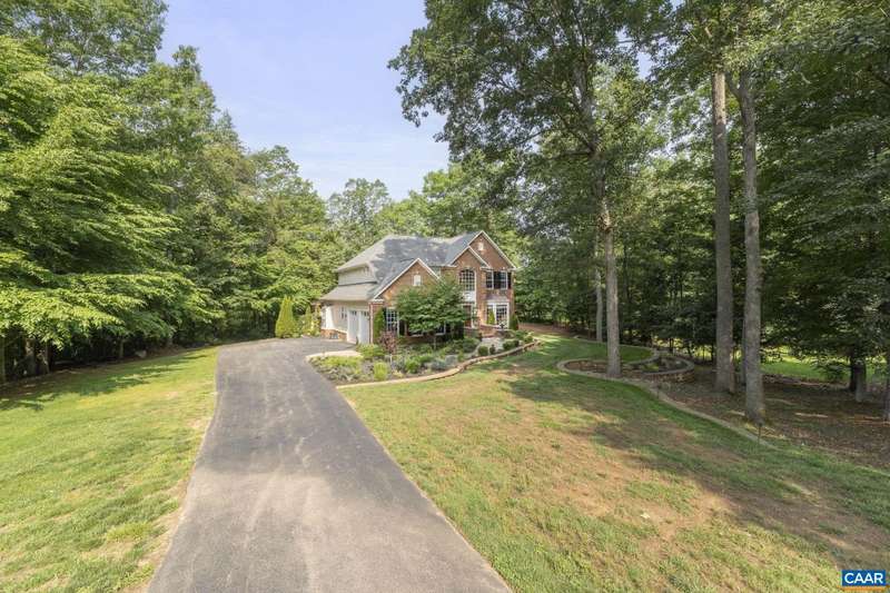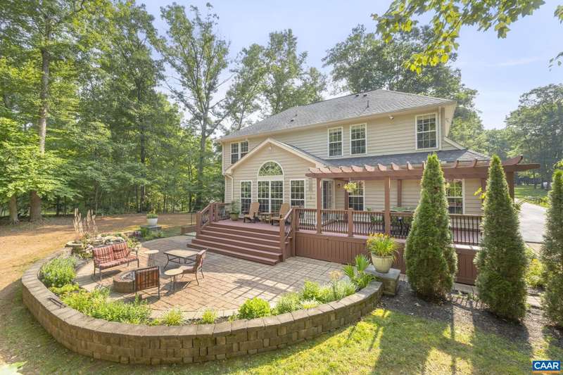 Experience the best of lakefront living in the sought-after Mountain Brook community of Louisa County, known for its low real estate taxes and serene natural beauty. This stunning 4,381 SF home with 4 bedrooms, 2 full/2 half bath home sits on over 2 acres of waterfront paradise, surrounded by mature trees and featuring a private dock, perfect for relaxing and entertaining. Enjoy impressive curb appeal with front hardscapes, retaining walls, paver walkways, and a garden wall. Enjoy a relaxing evening with a fine wine by the freshly stained, spacious rear deck overlooking the lake. Embrace quiet mornings with a cup of coffee on your paver patio with a tranquil water feature. Inside, a gourmet kitchen boasts new stainless-steel appliances, granite countertops, a large island, and cherry cabinets. Home is equipped with an invisible fence, LeafFilter® gutter guards, and high-end ceramic tinting in the breakfast room that blocks 99% of UV rays and heat. The security system includes a complete SimpliSafe wireless setup with cameras, sensors, and five 360° cameras. Located just 5 minutes from I-64 and 25 minutes to downtown Charlottesville, this is a rare opportunity for luxury, convenience, and peaceful waterfront living-do not miss it.