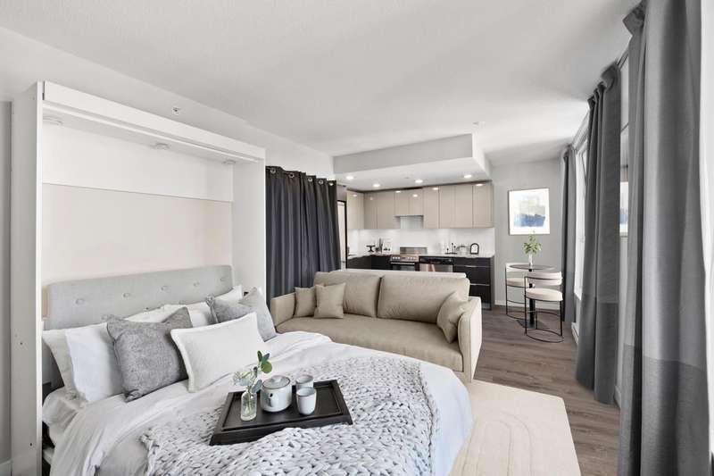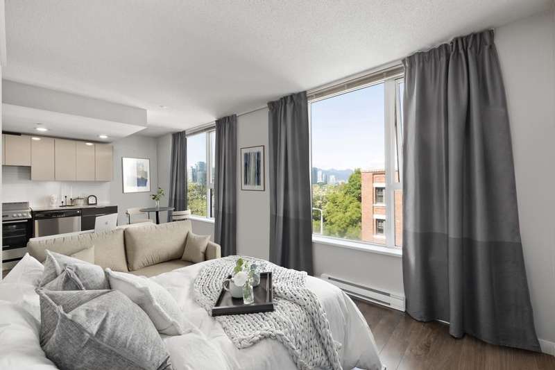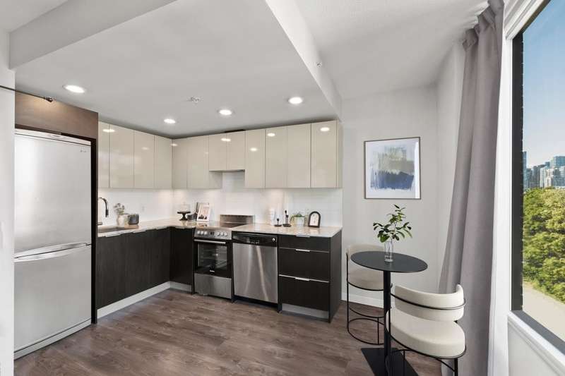 The Maynards Block, a sought-after concrete building offering comfort, convenience and, city & mountain views. This thoughtfully designed studio features an efficient layout ideal for first-time buyers, investors, or those seeking a smartly located pied-a-terre. Large windows fill the home with natural light, while a built-in Murphy bed enhances functionality and maximizes space. Enjoy in-suite laundry, and take advantage of the building's excellent amenities including a fully equipped gym and concierge services. Located just steps from the Seawall, CanadaLine SkyTrain, and OlympicVillage, with Yaletown and Granville Island just a short stroll away. A Walk and Bike Scores of 98, daily errands and city exploration are effortless. The home includes 1 secure parking, 1 storage & pets welcome!