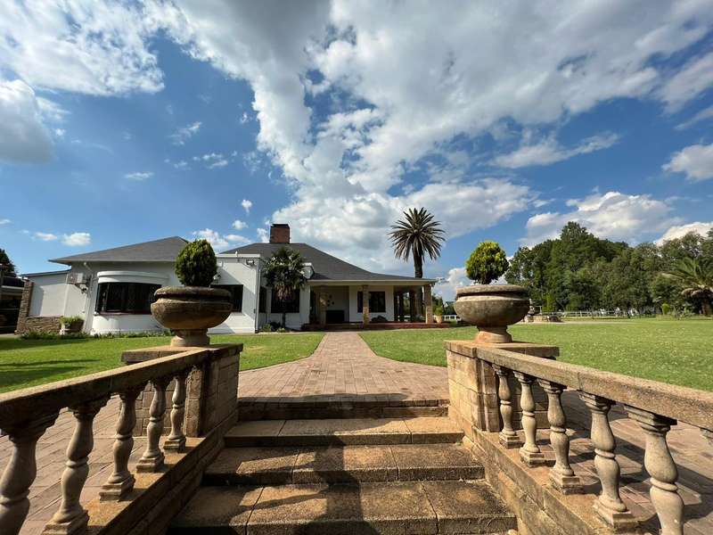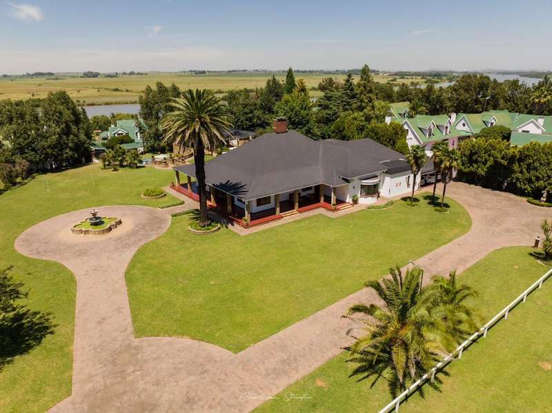 Wedding or Events venue opportunity on 12 000 square metres of flat manicured garden which contains a majestic home built in 1910. This is the original farm house of the area at the turn of the century.High pressed ceilings, solid oregon pine raised floor and lead glass handcrafted windows makes this home exceptional and a true masterpiece of the times. The sandstone cladded swimming pool was built by Italian master Masons and is remarkably presented with 2 stepdown staircases leading to a pergola . The property boasts stables, swan pond, Boma and a wrap around verandah.A 225 square metre hanger to house boats and toys is added to the 1000 square metre under roof buildings A 2 bedroom cottage lies at the back of the property for additional living space. Bonus is a 1 bedroom fairy tale style real life dollhouse. 30kva generator provides backup power and a storage dam for water is on site. Access to the river is made available for boating or fishing. A Dream home for sure.