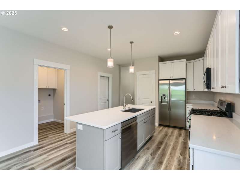 Welcome home to this New one level home! Just a short stroll to Shops, Resturants, and Coffee shop! Your going to love this open floor plan and the high-end finishes! Gorgeous island bar kitchen with Quartz counter tops, Stainless steel appliances, gas range, refrigerator, with nice pantry that opens to the dining room family room with vaulted ceilings, a cozy gas fireplace and sliding glass doors leading to covered deck! Coffered ceiling in the foyer. Large vaulted primary suite with views and has double sinks, Quartz counter tops, easy walk-in tile shower with glass doors, beautiful floors, and walk-in closet! has a laundry room with cabinets. Nice size back yard. Large area under the house for storage. Come take a look!