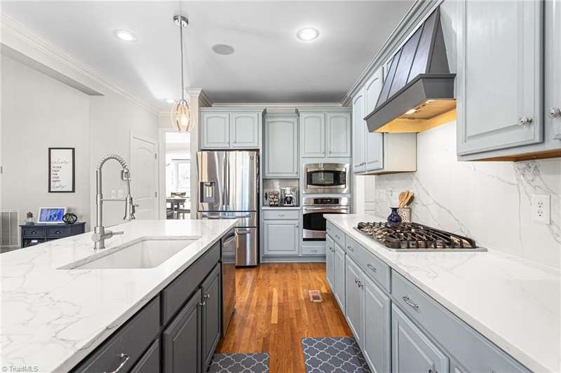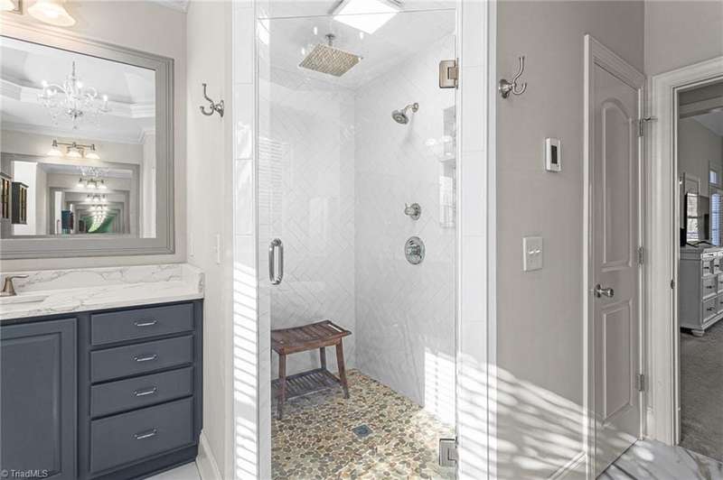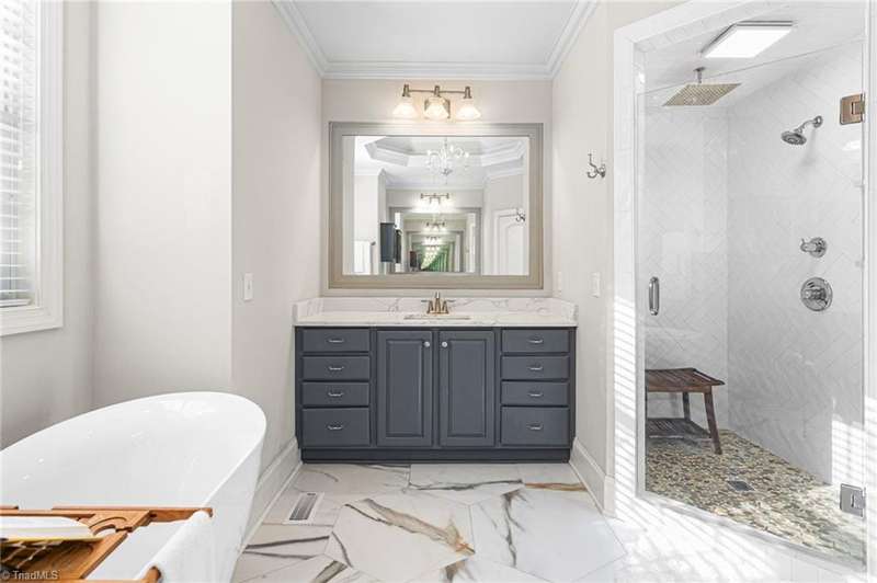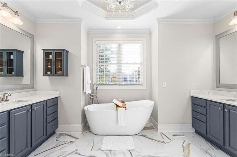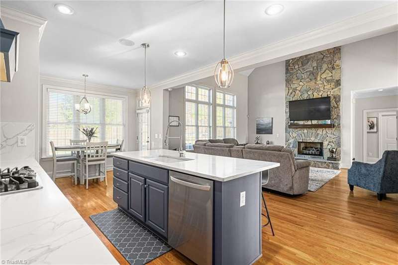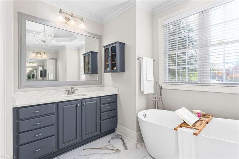 Stunning custom-built 2-story home sits on a cul-de-sac in the wonderful Waterford community! This 5BR/3BA home has it all: a 2 car garage and an open floor plan with an updated gourmet kitchen featuring a gas range, wall oven, microwave, pantry and a large quartz island. All baths and laundry have quartz countertops, hardwood floors in main living spaces downstairs, a two-story living room with a stone fireplace and a formal dining room with beautiful moldings. Main-level primary suite with vaulted ceiling, walk-in closet and a spa-like en-suite featuring heated marble floors, dual vanities, stand-alone tub, and walk-in shower. A guest bedroom and full bath complete the first floor. Upstairs includes 3 bedrooms, a bonus room, and a full bath. Enjoy the fenced backyard, manicured lawn and patio perfect for entertaining! Waterford offers a neighborhood pool and is convenient to shopping and highways. Come see this gem for yourself!