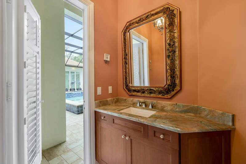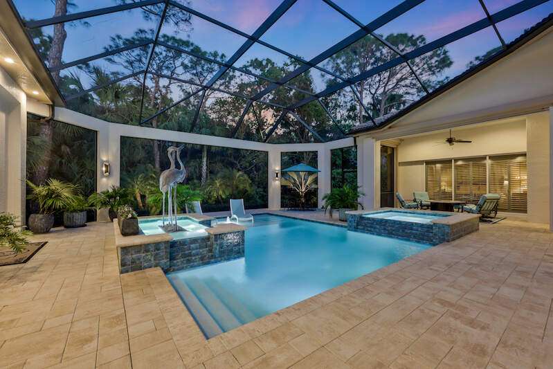 IMMEDIATE GOLF MEMBERSHIP AVAILABLE! Set within a private sanctuary on over two-thirds of an acre and bordered by a nature preserve, this one-of-one estate redefines luxury country club living. The SINGLE-STORY, 6,248 sq. ft. under roof residence offers FOUR ENSUITE BEDROOMS + DEN and FOUR-AND-A-HALF BATHS. Perfect for welcoming family and friends, the 2022-completed guest house by London Bay Homes features a morning bar and serene porch. Indoor and outdoor living merge effortlessly. The LIGHT-FILLED GREAT ROOM DESIGN boasts soaring architecturally accented ceilings and 10-FOOT DISAPPEARING GLASS SLIDERS that connect seamlessly to multiple lanais and an expansive sun-drenched pool deck. At the heart of the home, a SALTWATER POOL AND SPA create a resort-style backdrop, enhanced by uplighting on mature trees and palms, plus color-changing aquatic lights for a dazzling evening ambiance. Ideal for entertaining, the residence features a POOLSIDE KITCHEN with grille, beverage center, and sink, complemented indoors by a fully appointed BUTLER'S PANTRY with two wine refrigerators, ice maker, additional refrigerator, dishwasher, and farmhouse sink. A LANAI LIVING ROOM with gas fireplace, ample seating, and wall-mounted TV extends the outdoor lifestyle year-round. Additional highlights include: air-conditioned OVERSIZED THREE-CAR GARAGE; spacious LIBRARY/HOME OFFICE with wood floors and custom built-ins; PRIMARY SUITE RETREAT with two customized walk-in wardrobes and a remodeled bath with onyx-topped cabinetry and floor-to-ceiling tiled shower; IMPACT GLASS, STORM CATCHER MOTORIZED SCREENS, whole-house GENERATOR, and BRAND-NEW ROOF w/ transferable warranty. Elevate your everyday in COLLIER'S RESERVE COUNTRY CLUB-the first-ever Audubon Signature Sanctuary community, home to just 224 single-family estates across 450 acres in the heart of North Naples.