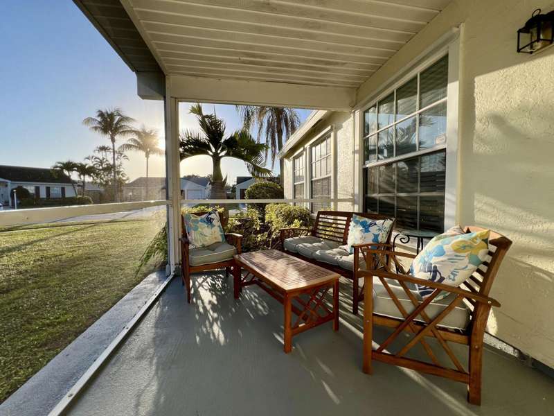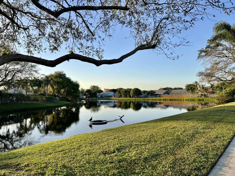 Cheerful single-family home on a corner lot with large fenced in yard. A screened in porch at the front of the home, 1 car garage, and large side yard with space for a boat. High vaulted ceilings with tons of natural light, open concept floor plan and wall to wall tile throughout. Peace of mind with new roof, HVAC, and dishwasher. Home is within a tranquil neighborhood just steps away from 2 large ponds for fishing or bird watching. Great school district and quick access to Wellington and the turnpike. Pet friendly!