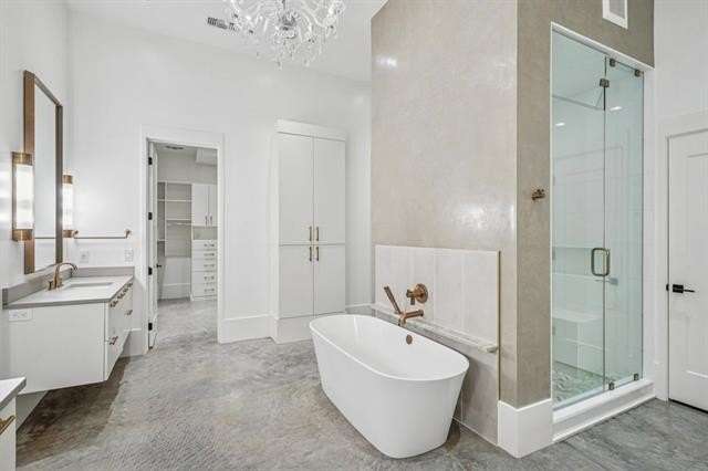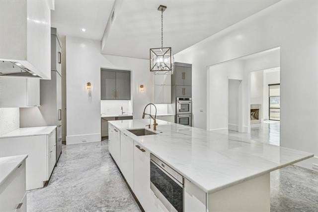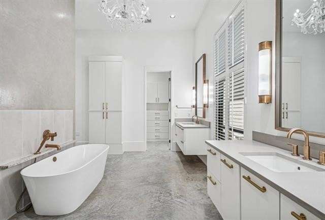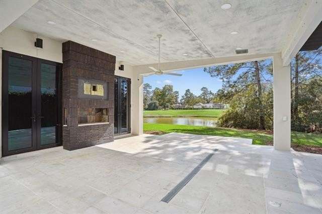 Fabulous Tchefuncta Estates Ph2 contemporary beauty, situated on a quiet cul-de-sac and overlooking a peaceful golf course and pond view. The chic interiors have been curated with sophistication and style, and are truly a blank canvas for any design aesthetic from modern to traditional. A courtyard leads you to the foyer with Venetian plaster walls, which opens to the generous dining/keeping room, featuring sleek concrete floors and walls of glass to take in the views. The chef-inspired kitchen will delight the most discerning cooks, with custom cabinets, Quartzite counters, a large island with ample storage and seating, and appliances including a Sub Zero fridge and two Asko dishwashers, with integrated cabinet panels for a seamless contemporary look. A bar/butler's pantry with wine column and ice maker makes entertaining effortless and leads into the living room with fireplace. A spacious first floor primary suite features walls of glass showcasing the golf course. The luxe spa-inspired bath includes a soaker tub, ample walk in shower, and two generous closets. Upstairs you will find an office nook and three bedrooms, one an ensuite. One bedroom would also double as a second floor den, playroom, or gym. Enjoy amazing outdoor entertaining on the oversized covered patio with gas fireplace and peacock paver floors. A two-car attached garage features an epoxy finished floor and includes a golf cart bay, ensuring all of your vehicles and toys will be secure. Whole home generator-ready. Flood Zone C.