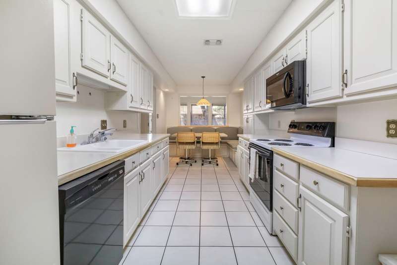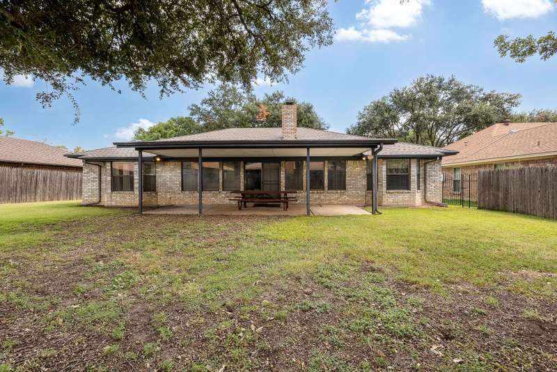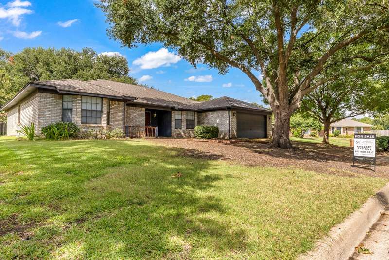 Welcome to this well-maintained traditional home in Southwest Fort Worth. Situated on a quiet street with easy access to Hulen Street, Chisholm Trail Parkway, and I-20, this 3-bedroom, 2-bathroom home offers 1,913 sqft of smart design and everyday comfort. Inside, enjoy a split-bedroom floor plan, vaulted ceilings, and two spacious living areas centered around a beautiful brick fireplace. The large primary suite features an en-suite bath with separate shower and dual-sinks. A formal dining room is located just off the eat-in kitchen. Step outside to a private backyard complete with a covered patio, mature trees, a storage shed, and plenty of room to relax or entertain. All appliances including washer and dryer convey. Built-in work bench and tool storage with extra freezer in the garage. This property is ideal as a first home, investment property, or rental portfolio addition. With great bones and cosmetic upgrade potential, its ready for your vision. Dont miss this opportunity to own in a desirable Fort Worth neighborhood!