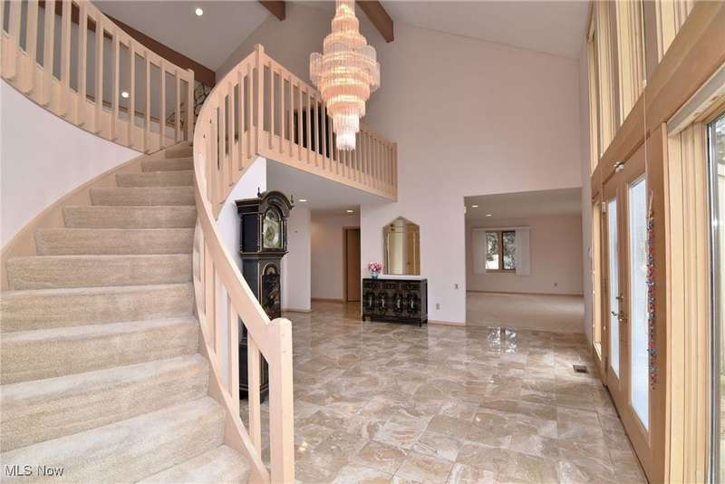 Welcome to this stately transitional colonial designed by Irv Robinson sited on a lovely 1.5 acre lot. Upon entering the 2 story marble foyer with a curved staircase you are surrounded by walls of windows. Spacious formal living and dining rooms. The grand family room features a 2-story stone fireplace, a built-in bar and cabinetry and an atrium door to the deck and yard. The highlight of the home is the remodeled kitchen by Premier Custom Builders with extensive custom cabinetry, quartz countertops and a large center island with Australian Pearl granite top. All high-end stainless appliances including a Miele steamer/microwave. Bedroom on the first floor with remodeled ensuite bath makes an ideal guest suite. Laundry and half bath in conveniently in the back hall. Additional guest powder room off main foyer. Upstairs sleeping quarters with 4 bedrooms. The Owners Suite has a stone fireplace, walk-in closets and updated bath with jetted tub, separate stall shower and dual vanities. 2 large bedrooms each with walk-in closets share the remodeled hall bath while the 4th bedroom, freshly carpeted and painted enjoys an ensuite bath, dressing room plus a bonus room perfect for crafts, gaming or other hobbies. Enormous lower level, with a convenient half bath. A circular drive, deck, 3-car garage and 2 zone HVAC are additional features. Exterior waterproofing and new drain tiles (Sept 2025) with 15yr warranty. Close to schools, shopping and hospitals make this an ideal home.