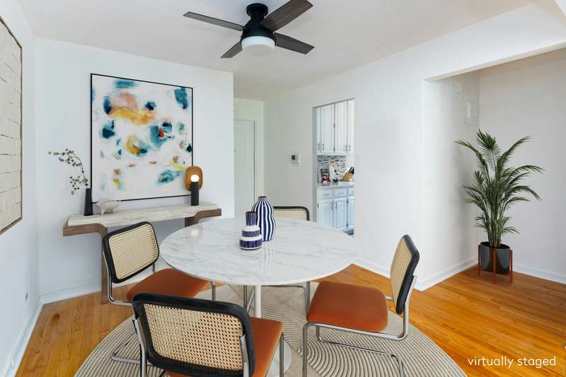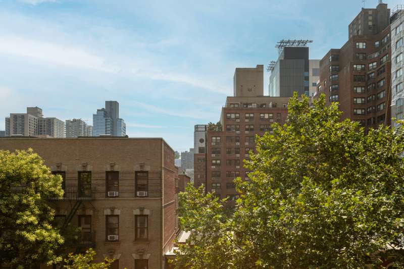 Welcome to Apartment 6F, a serene and spacious 1-bedroom co-op nestled on the top floor of a classic six-story elevator building in the heart of the Upper East Side. This move-in-ready home boasts open southeast exposures, allowing natural light to flood the living space throughout the day. The living and dining area offers expansive views over the tree-lined street, rising above neighboring townhomes to provide both privacy and a sense of openness.