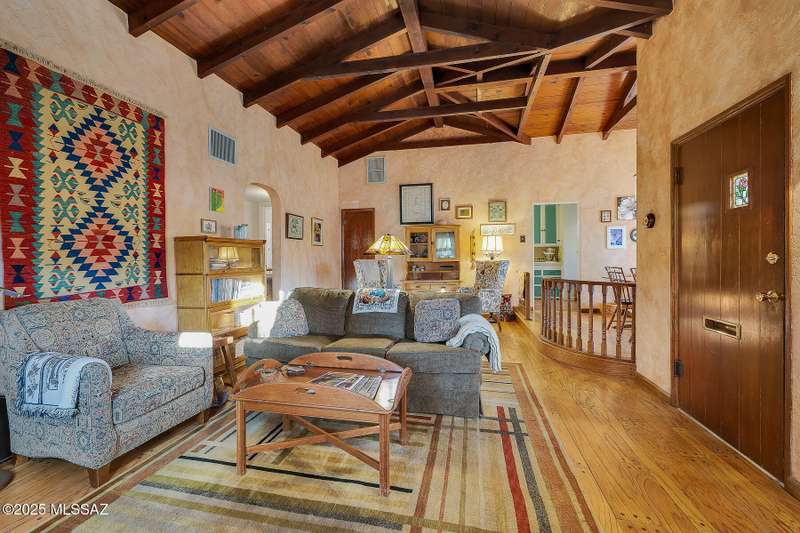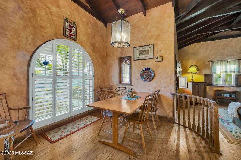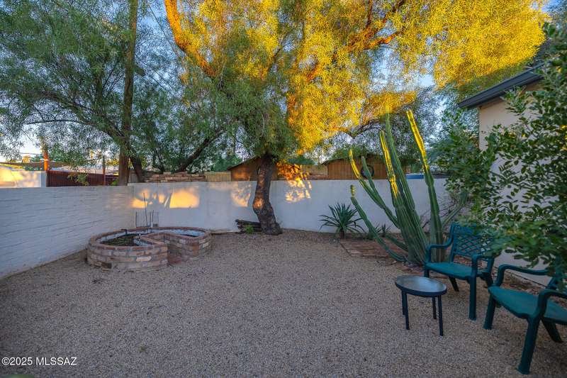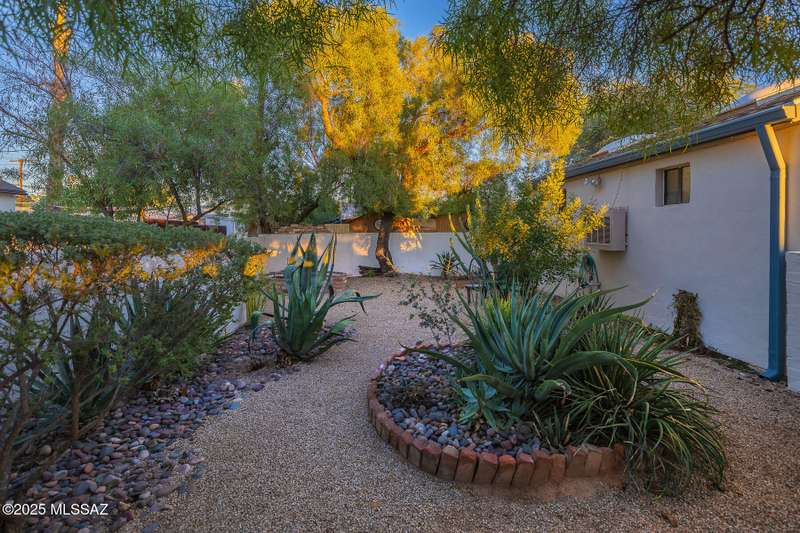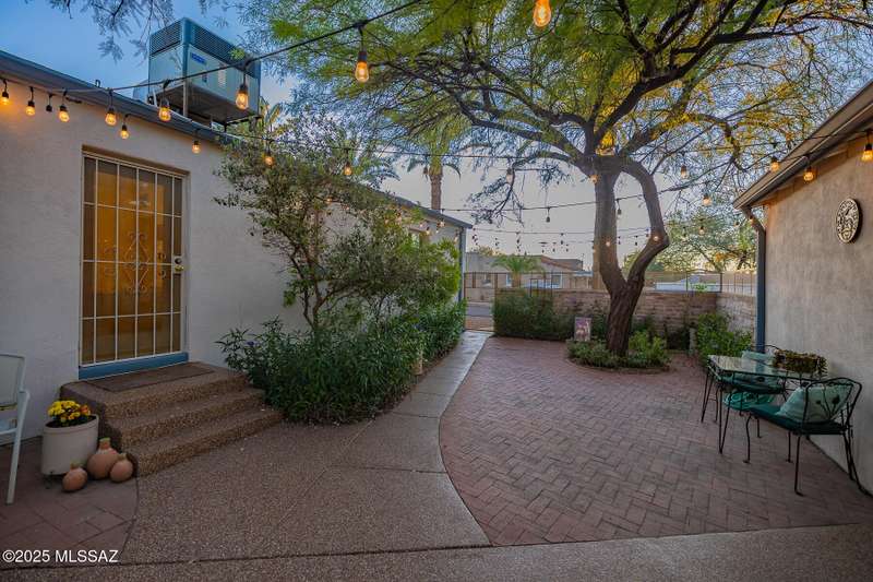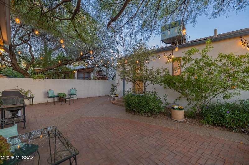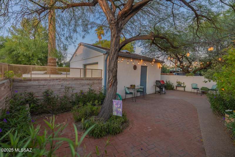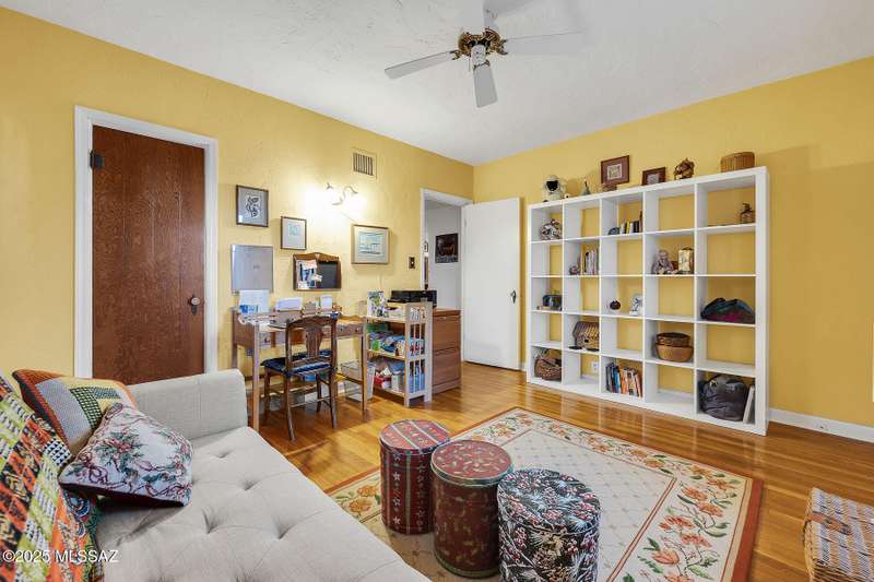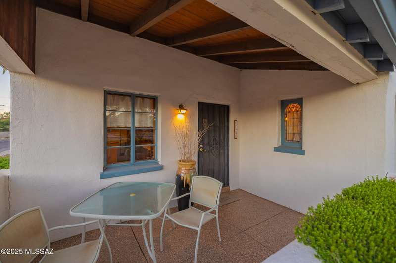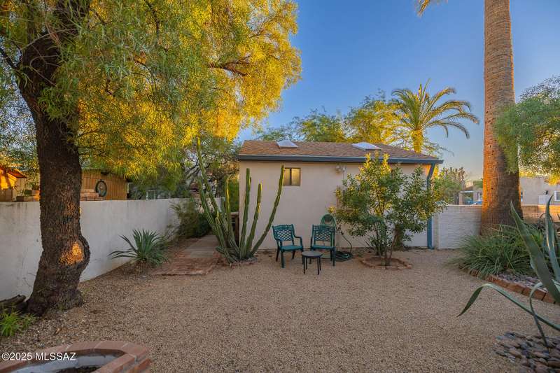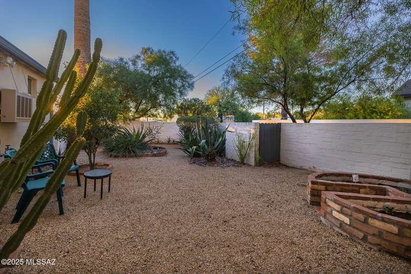 Sam Hughes exquisite interior, stunning living room w/ wood ceiling & floors, fireplace & wonderful, raised dining area w/ wood floors. Kitchen w/tile. Charming, private, walled, rear brick patio. Large garage w/ attached, wood floor studio storage. Very attractive corner lot large enough to add a guest house. 1 blk to Sam Hughes Place & restaurants/ shops. U of A is 2 blocks. Walk to Basketball/Football games. Qualifies for historic real estate tax reduction on primary home.