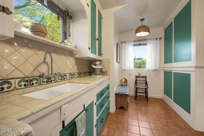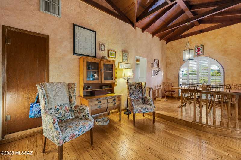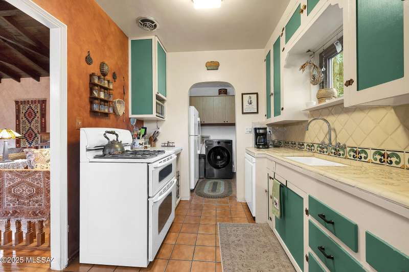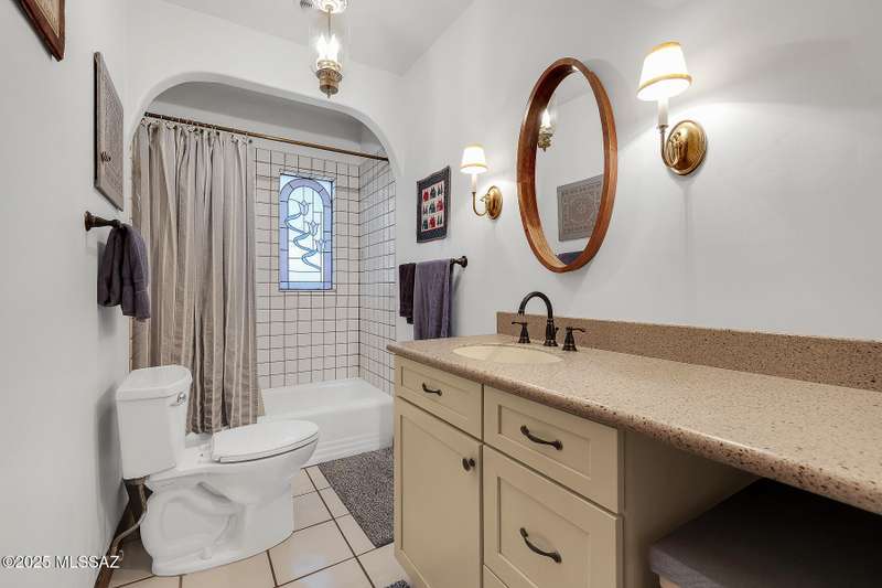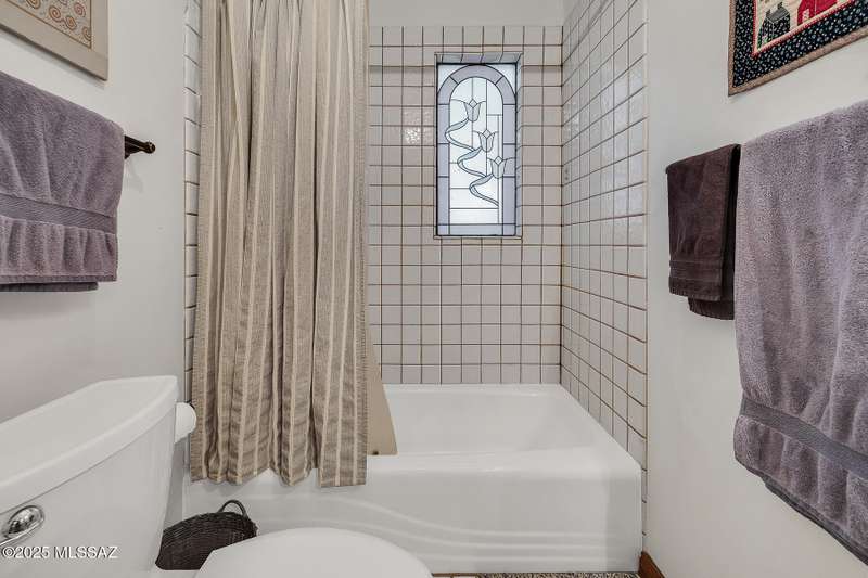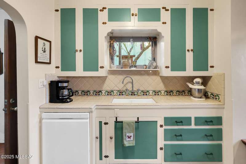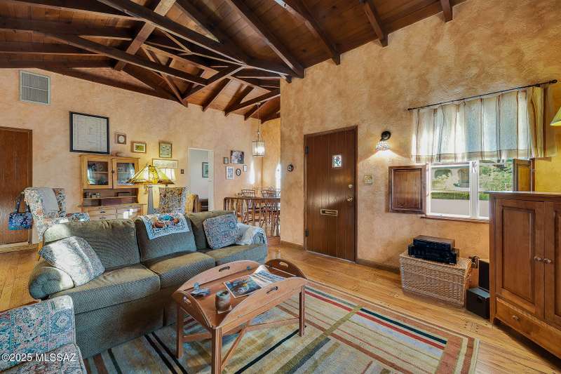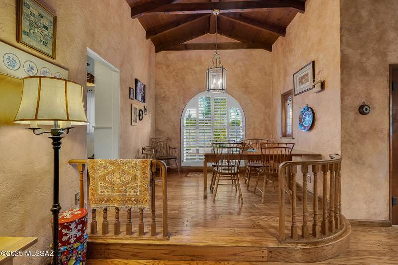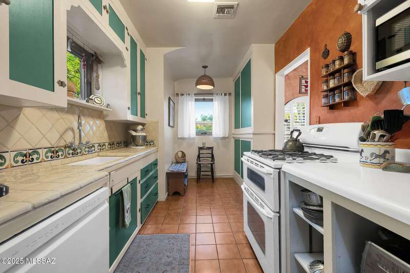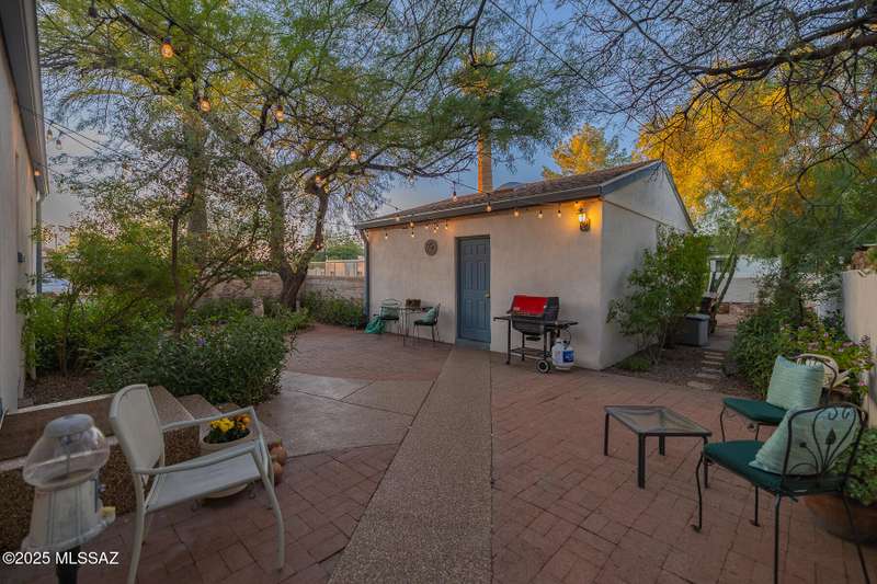 Sam Hughes exquisite interior, stunning living room w/ wood ceiling & floors, fireplace & wonderful, raised dining area w/ wood floors. Kitchen w/tile. Charming, private, walled, rear brick patio. Large garage w/ attached, wood floor studio storage. Very attractive corner lot large enough to add a guest house. 1 blk to Sam Hughes Place & restaurants/ shops. U of A is 2 blocks. Walk to Basketball/Football games. Qualifies for historic real estate tax reduction on primary home.