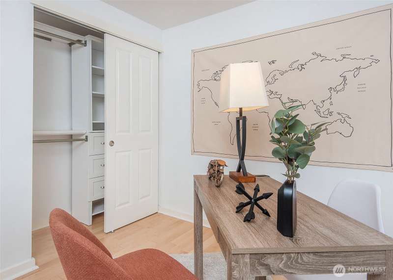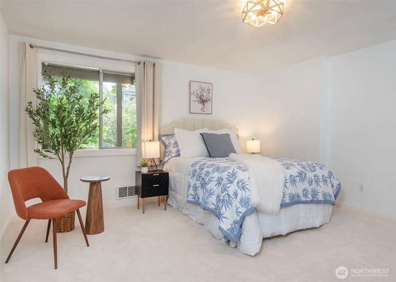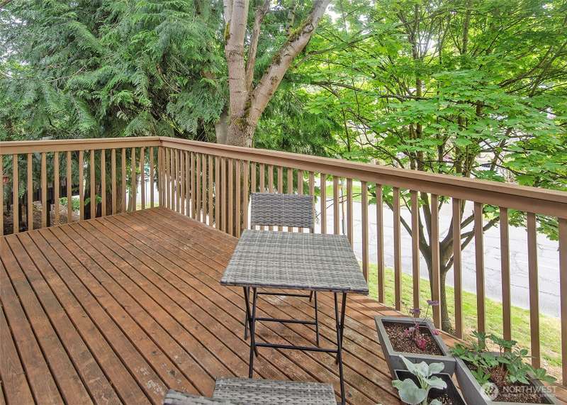 Queen Anne two bedroom near Rodger's Park, five corners & SPU w/Maple hardwood flooring, carpeted master bedroom, Hunter-Douglas shades, efficient Mysa heating system, tiled spa bathroom with new Toto commode. Spacious wood deck with tree canopy outlook, close to Queen Anne Avenue with shops, gyms & groceries plus selection of restaurants & bakeries in pet friendly, walkable neighborhood. Updated kitchen & bath w/assigned parking right at front door!