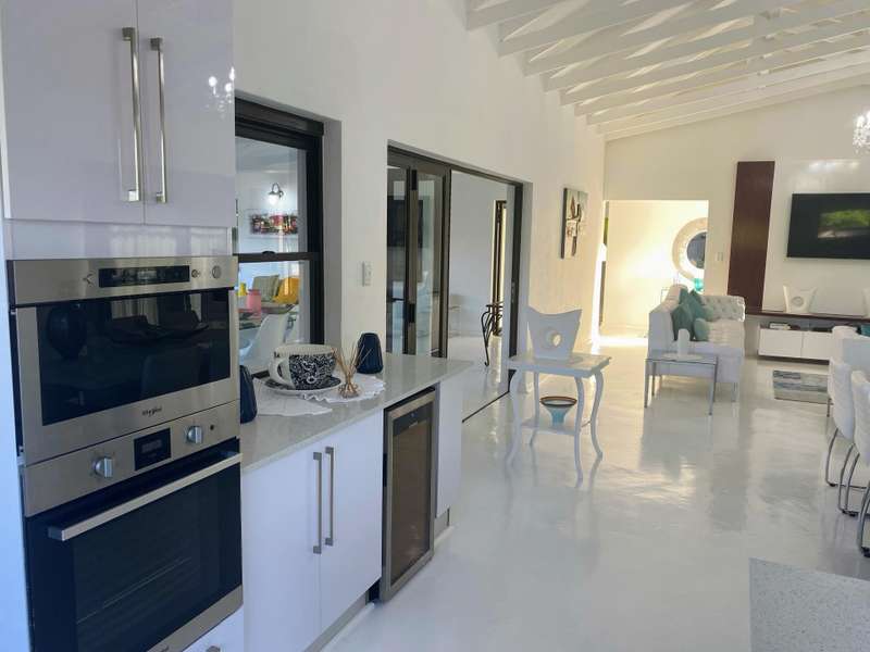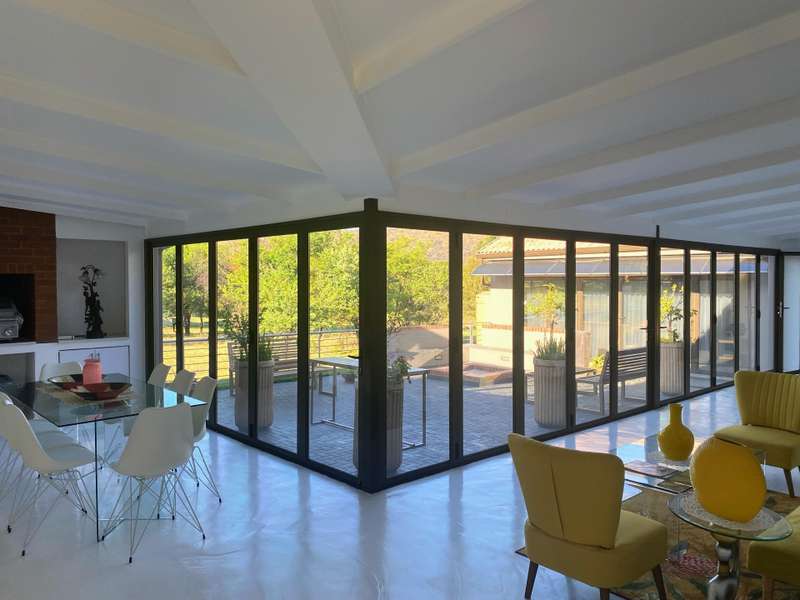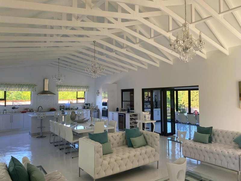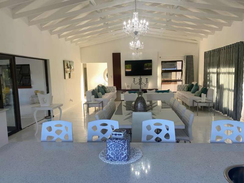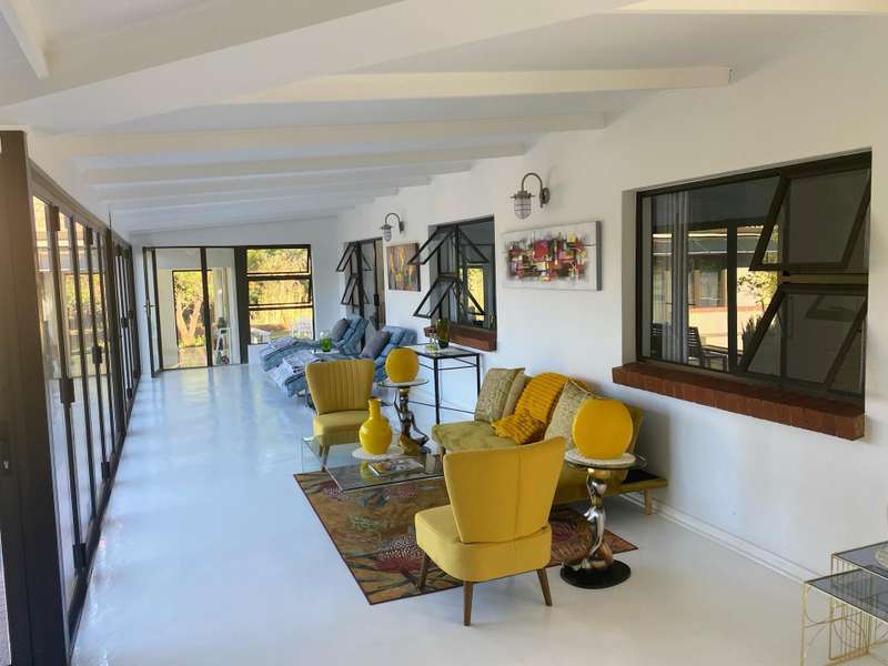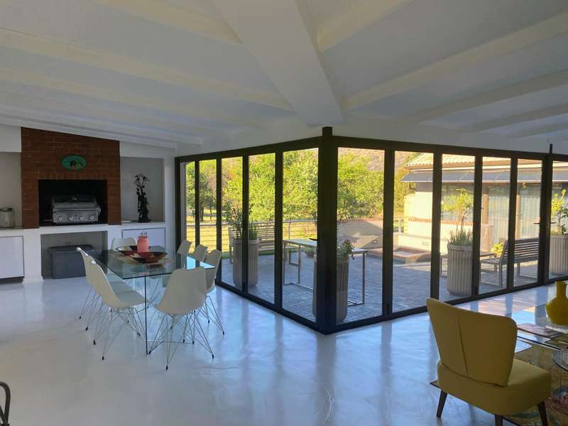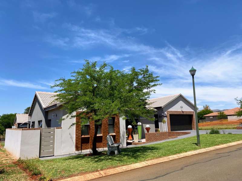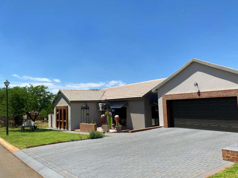 Absolutely stunning architectural masterpiece in the heart of Buffelspoort Eco Park. Say goodbye to countless stairs, as this home offers unparalleled convenience with a single-level layout. Upon entering, you'll be captivated by the seamless blend of natural light and airflow that defines this home's perfection. Every step you take within the house reaffirms its practicality and thoughtful design. The open-plan living areas boast grand open roof trusses and elegant hanging chandeliers, epitomizing timeless sophistication. Two generously sized kids' or guest rooms share a well-appointed separate bathroom. A thoughtful touch is the guest bathroom's separate toilet and basin area, ensuring space for everyone's needs without compromise. Prepare to be amazed by the main bedroom ?Çô an indescribable sanctuary of space and comfort. It features an open-plan makeup/dressing area and a luxurious en-suite bathroom. Throughout the home, a cozy, welcoming patio envelopes the living spaces, overlooking the tranquil bom/firepit area and the lush surrounding bushveld environment. The garden, designed with both aesthetics and sustainability in mind, hosts indigenous trees and a manageable lawn area. A double garage is seamlessly integrated with attached staff quarters, complete with its enclosed courtyard. The icing on the cake? This exceptional property abuts the greenbelt/pathway that winds its way through the estate, including a picturesque dam/pond garden-bench area. Here, tranquility and privacy are yours to savor. Don't miss the chance to own this slice of paradise in Buffelspoort Eco Park. Contact us now to make it yours.