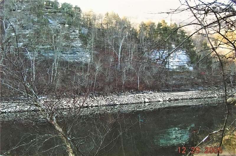 The 3 acre lot on the White River offers stunning views of the rock bluffs on the opposite bank, which soar over 150 feet above the river. Recent photos reveal that most of the rock bluffs are concealed by tree leaves. The breathtaking view was the main selling point for the property owners when they purchased the lot in 2006, along with the gradual slope from the CR 231 lot entrance to the river's edge. The 100x1300 lot is densely covered with trees and is approved for a 5-bedroom home. The country roads leading to the lot are well-maintained gravel.