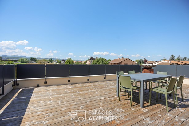 Located just minutes from downtown Macon, this contemporary house, built in 2023, offers approximately 200 sqm of living space on a 900 sqm enclosed plot. It offers high-end amenities, modern comfort, and unobstructed views of the iconic Maconnais landscapes. A large west-facing terrace allows you to fully enjoy the sunsets overlooking the Roche de Solutre. The home is organized on the first level. The vast living room, bathed in light, houses a contemporary open-plan kitchen, fully equipped and meticulously furnished. The whole provides access to a generous terrace, a true extension of the living room to the outdoors. The sleeping area consists of two bedrooms with dressing rooms sharing a bathroom, as well as a master suite with a dressing room and private shower room. The whole benefits from quality amenities: aluminum frames, electric roller shutters, underfloor heating by heat pump, and air conditioning. The ground floor houses a large garage and a vast workshop, with a converted area offering the possibility of a private living space for a professional activity or a personal project. Outside, the fully enclosed grounds are secured by two electric gates. The garden layout offers a beautiful balance between pleasure and low maintenance, with strong landscaping potential. The house benefits from a strategic location, close to shops, schools, services and transport links. Access to the A6 motorway, the Macon-Loche TGV station and urban infrastructure is quick and fluid. This rare property combines modern architectural lines, technical comfort and an inspiring setting. An elegant and functional living space, designed for contemporary family life. ENERGY CLASS: A / CLIMATE CLASS A: . Average energy prices indexed for the years 2021, 2022, 2023 (subscriptions included): between EUR580 and EUR810. Information on the risks to which this property is exposed is available on the Georisques website for the areas concerned. Jean-Charles BUATOIS, 06.27.47.49.38. Commercial agent (EI), 911 278 737 RSAC. Bourg en Bresse.