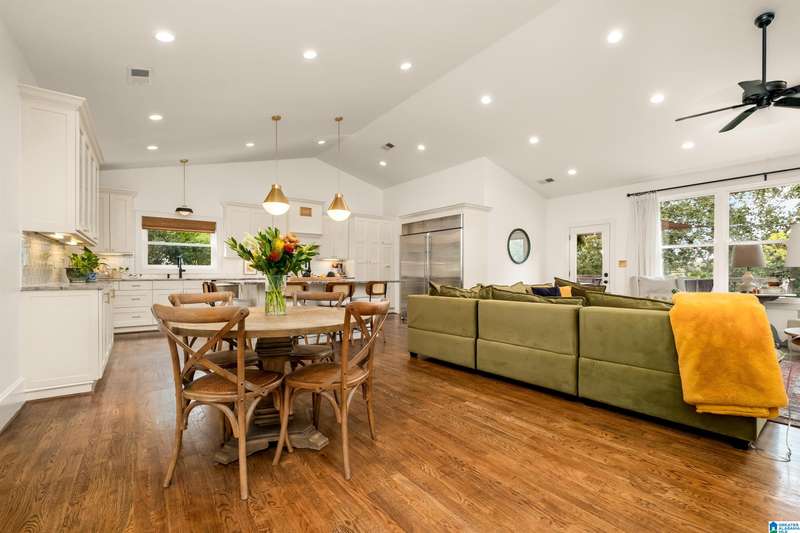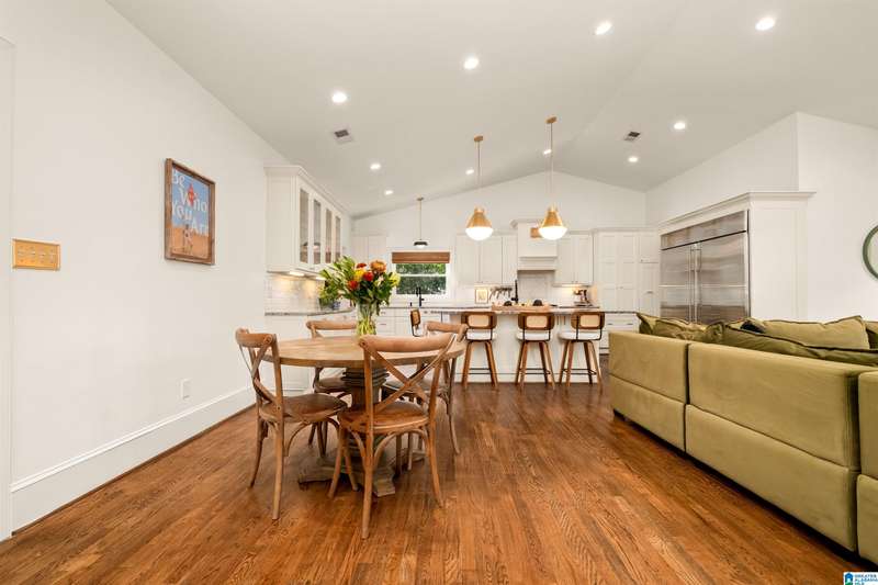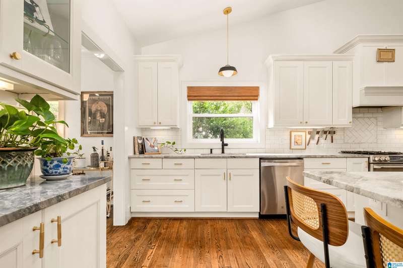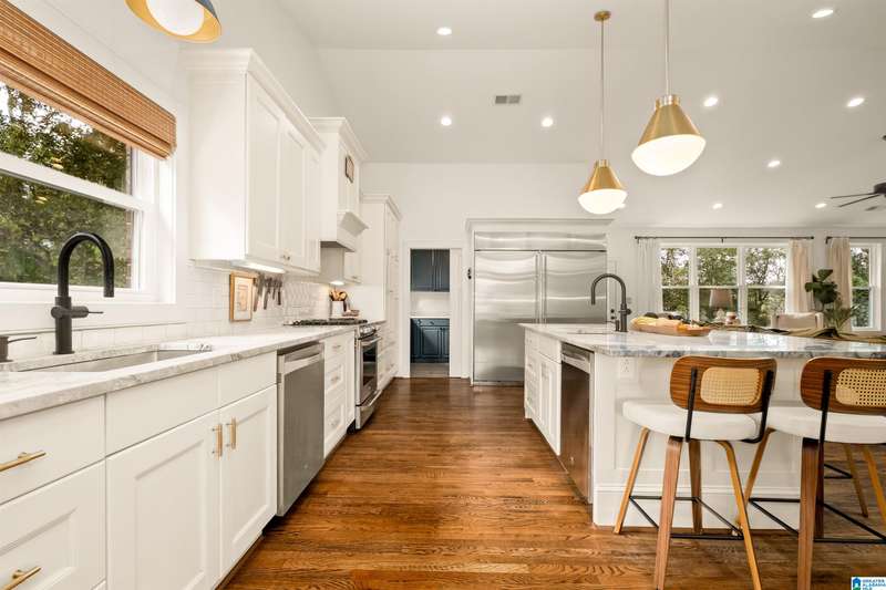 This charming, renovated home boasts tons of curb appeal & will wow you with space inside! Nestled on a half acre on a quiet street in the heart of Vestavia Hills, this 6BR/5BA home offers 4,300 sq ft of thoughtfully designed living space & incredible location - walk to Wald Park, Vestavia City Center, library & elementary school. Abundant natural light, hardwoods & soaring ceilings create an inviting open floor plan, perfect for entertaining! The chef’s kitchen boasts a 70” fridge/freezer, dual dishwashers & sinks, oversized island, stone countertops & walk-in pantry/laundry. Enjoy a spacious deck with sunshade, private wooded views & fenced backyard. The vaulted main-level primary suite is a true retreat with marble finishes, large walk-in closet & spa-worthy bath. Additional 2BR/2BA on main level. Upstairs: 2BR/1BA & walk-in attic. The daylight basement has 1BR/1BA & large rec rooms. 3-car garage includes EV charger, storage & workshop. You will LOVE living at 1848 Indian Hill Road!