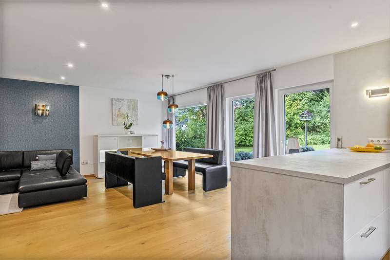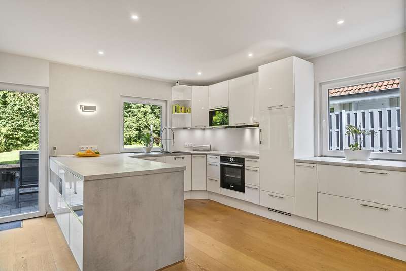 This spacious Swedish house built in 1992 combines contemporary living comfort with versatile usage options on a total living space of approx. 190 m², the commercial space is approx. 236 m². The well-kept property is located on a plot of approx. 1,176 m² in a mixed-use area and boasts a quiet yet central location. The last comprehensive modernization was carried out in 2019, so the property is in an attractive, up-to-date condition. The building has a total of 13 rooms, including three spacious bedrooms, which offer enough space for individual living requirements. An additional office provides ideal conditions for concentrated work in a home office or for prestigious use as a business space. The arrangement of the rooms ensures a flexible separation of private living areas and potential workspaces or business premises. A total of four modern sanitary facilities are included. Two of the guest toilets are assigned to the commercial area and offer practical comfort for customers and employees. The two other modernized bathrooms are located in the residential building and ensure privacy and comfort for the residents. The residential building has two separate entrances: To the side is an inviting entrance hall, which is reserved exclusively for the private living areas. The prestigious main entrance at the front of the house, on the other hand, leads into the optional commercial areas. This division enables a clear separation of private use and business activities. On the first floor, you will find a bright living area with an open and friendly design. Generous window areas create a pleasant living atmosphere and provide a harmonious view of the well-tended garden. A stylish wood-burning stove creates a homely highlight here, providing cozy warmth and underlining the comfortable character of the house. The high-quality furnishings are reflected in selected floor coverings and attractive materials, among other things. The kitchen is designed as a separate, well-equipped room and offers plenty of work and storage space. It allows for the convivial preparation of meals and is functionally designed. Directly adjacent is the dining area, which is ideal for family meals or convivial evenings. A special highlight is the home's own sauna, which invites you to relax after a busy day and adds an additional feel-good element to the house. Three bedrooms offer a variety of uses, whether as a master bedroom, children's room, guest room or study. All rooms have sufficient natural light and are attractively sized. The bathrooms and guest WCs were tastefully renovated during the modernization and are equipped with contemporary sanitary facilities. The spacious plot offers plenty of room for outdoor leisure activities. The well-tended garden invites you to linger and offers space for individual design ideas, such as seating or play areas. The floor heating ensures efficient heating on all levels. Further convenience is provided by parking spaces and storage rooms. A modern wallbox with 22 kW charging power is also available for electric mobility, allowing you to charge your vehicle quickly and conveniently. As a Swedish house in timber construction, the property also offers numerous advantages: The construction method ensures a pleasant and healthy indoor climate, excellent thermal insulation and a natural living atmosphere with a special feel-good character. Wood as a building material creates comfort, is sustainable and energy-efficient - an ideal combination for modern and environmentally conscious living. The generous room layout and the high standard of furnishings create the best conditions for a wide variety of living and working concepts. You are welcome to arrange a viewing appointment to see for yourself the advantages and versatile uses of this property.