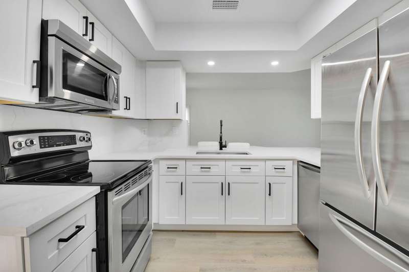 Totally renovated!!! Priced to see fast!! First-floor 2/2 condo located in the desirable El Viento. Every inch of this home has been thoughtfully updated with high-end finishes and modern style. Enjoy new flooring throughout, smooth ceilings, updated baseboards and crown molding, and designer lighting plus more! Sleek white kitchen is a showstopper, featuring quartz countertops, stainless steel appliances, custom cabinetry, and a clean, contemporary layout. Both bathrooms have been completely remodeled with today's most stylish fixtures, vanities, and tile work. An enclosed patio expands your living space and provides the perfect spot to relax or work from home while enjoying serene golf course views. This unit is ideally located close to the community pool and tennis courts