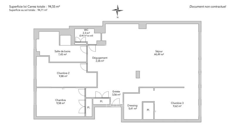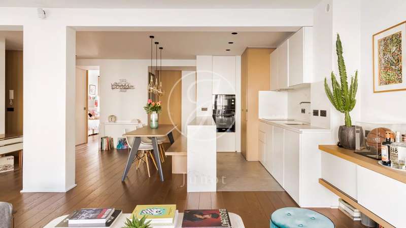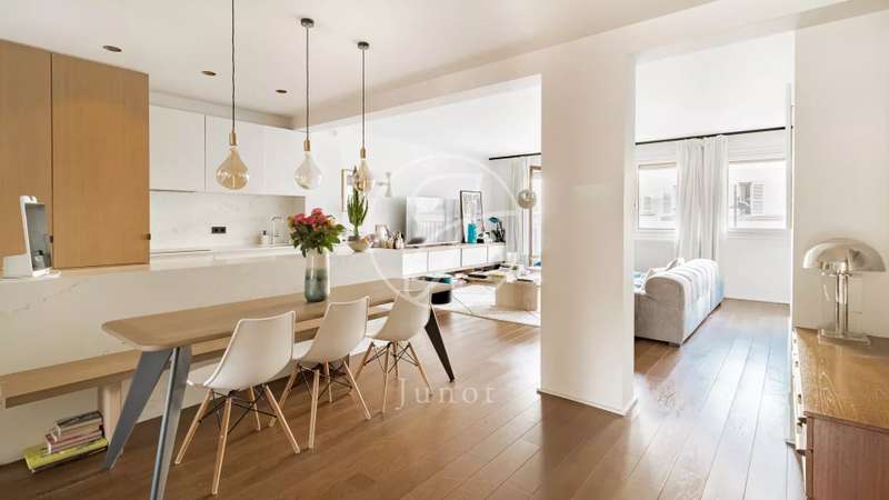 Just a stone's throw from rue Saint-Dominique and its shops, in a well-maintained condominium whose facade will soon be renovated (work voted on and paid for), this beautiful family apartment of 94.55sqm loi Carrez is located on the third floor by elevator. It comprises an opening onto a magnificent double living room bathed in light, comprising a lounge and a dining room with a fully-equipped open-plan kitchen. The west-facing living area offers generous volumes and a convivial atmosphere. A first bedroom with dressing room completes the space. On the quiet courtyard side, there are two further bedrooms, a bathroom with shower and bathtub, and a separate toilet with laundry area. It will seduce you with its privileged location, its high floor, its through-going luminosity and its numerous storage spaces. A cellar is included in this offer.