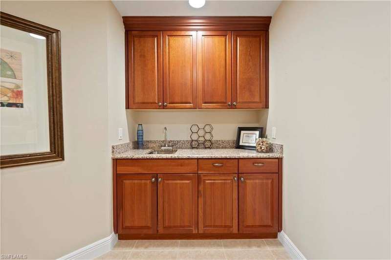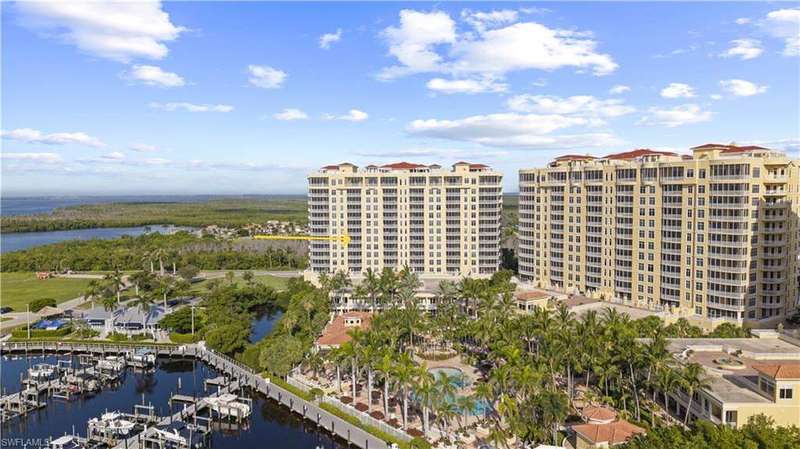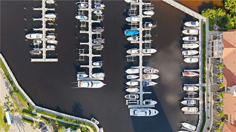 Nestled in the heart of Cape Coral, this exquisite waterfront property offers unparalleled luxury and convenience within a prestigious gated community. With deep-water Gulf access and leased boat dockage accommodating vessels up to 75 feet, this haven is a boater's dream, complimented by a full-service marina just moments away. As you explore the two expansive pools you'll be surrounded by tropical palms and mature landscaping giving you the island feeling. The two balconies offering breathtaking east and west views, leave you captivated by the stunning vistas of both the Bay leading to the Gulf and the serene river overlooking lush mangrove estuaries. The community is rich with amenities-dive into relaxation with a community pool and spa, challenge yourself at the exercise room, bocce court or enjoy leisurely days at the fishing pier, tennis court or a lively game of Pickle Ball. The clubhouse beckons with billiards to challenge your expertise, while bike and jog paths wind through beautifully mature grounds. A private elevator delivers you directly to your foyer with double doors opening to a beautiful open floor plan. With over 2900 sq. foot of living area, you have plenty of room for family, friends and entertaining. All stainless appliances grace the home, 2 viewing balconies facing east and west, 3 bedrooms, 3.5 bathrooms and a den for use of whatever makes you happy!! The community's award-winning dining and shopping options are right at your doorstep with a winding boardwalk around the property to stroll along and enjoy the Florida sunshine. Whether for sun-drenched beach days or tranquil sunset cruises, this property promises an unmatched living experience, where every convenience and luxury is at hand. This unit comes with a 2 car 2nd floor elevated Garage for your toys! Call for your private viewing, the home will not disappoint!!