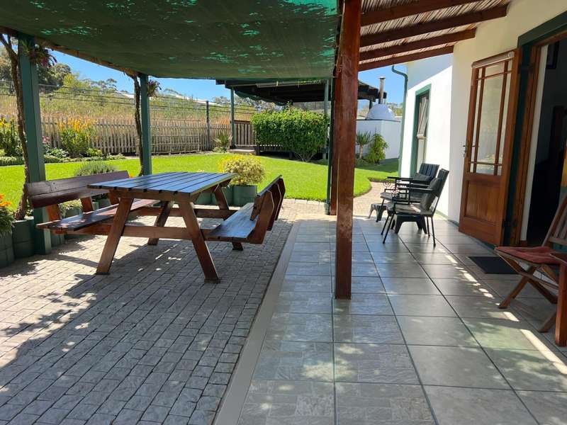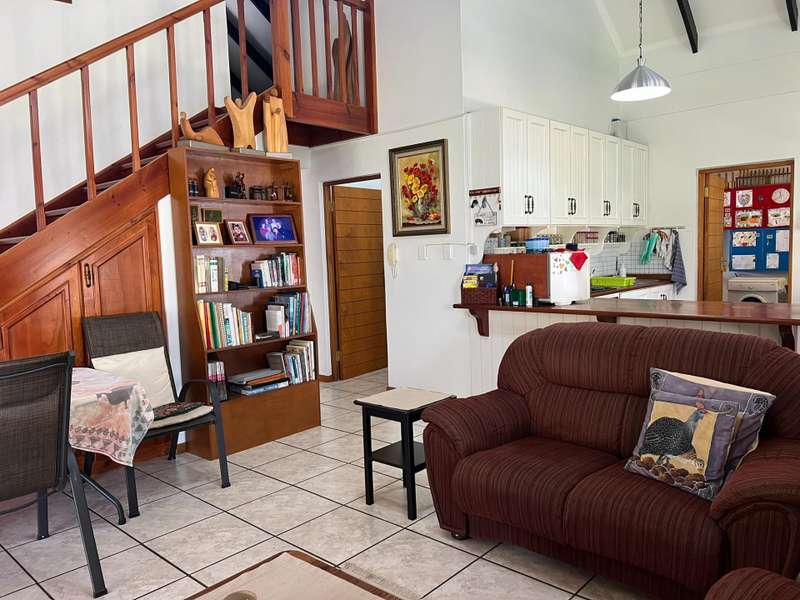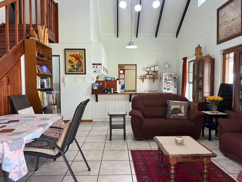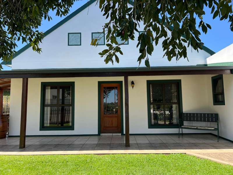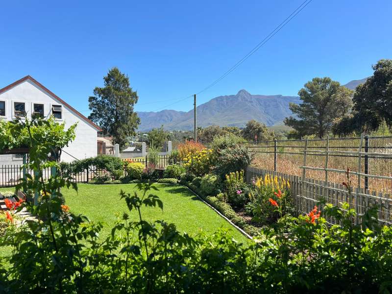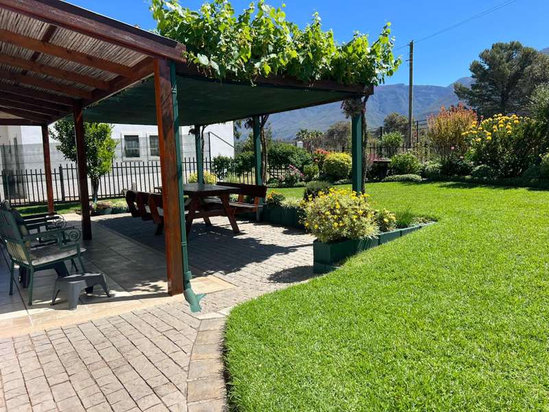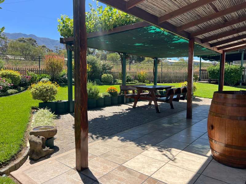 Privately tucked away in a peaceful panhandle, this beautifully maintained double-storey home combines Cape-style charm, modern comfort, and tranquil mountain views. Ideally located close to the hospital, this home offers both convenience and serenity. The inviting open-plan kitchen and living area features a striking double-volume roof, creating a bright, airy atmosphere ideal for family living. Two spacious bedrooms are located downstairs ?Çö one with its own en-suite bathroom, and another serviced by a separate bathroom. The third bedroom upstairs provides a private retreat with its own en suite, offering flexibility for family or guests. Quality finishes include aluminium windows, a corrugated roof, and smooth plastered walls for a timeless, low-maintenance look. Enjoy relaxed entertaining and easy indoor-outdoor flow with both a covered patio and a spacious deck with built-in pizza oven ?Çö perfect for gathering with friends and family. Beyond lies the beautifully landscaped garden, a lush sanctuary filled with mature trees, vibrant greenery, and tranquil corners that invite you to pause and breathe. Here, you can truly unwind while taking in the mountain backdrop and peaceful surroundings. A truly special home offering character, privacy, and an exquisite garden setting ?Çö the perfect retreat to enjoy Swellendam?ÇÖs natural beauty and laid-back lifestyle.