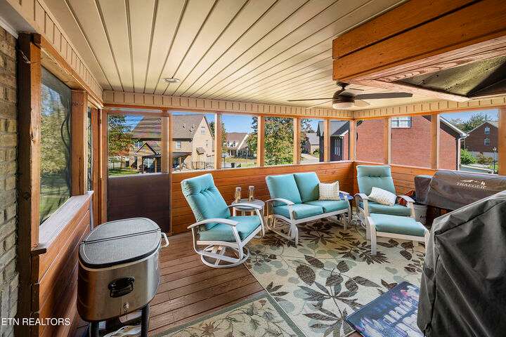 You will fall in love with this home... This charming 2½-story brick beauty welcomes you with warmth and character. Offering 4 spacious bedrooms and 3½ baths, it includes a versatile bonus room with a full wall of closets—perfect as a 5th bedroom or private retreat. The inviting living room makes an ideal home office, while the elegant dining room sets the stage for special gatherings. The sunlit kitchen with breakfast area opens to a cozy family room featuring a gas log fireplace and built-in surround sound—perfect for everyday comfort. Step onto the large screened porch overlooking a lush, fenced backyard, ideal for play, pets, or peaceful evenings outdoors. Upstairs, the 3rd-floor 'Penthouse Suite' provides a spacious bedroom with a generous closet and full bath—ideal for guests or teens. Additional features include a HEPA filtration system on the 1st and 2nd floors. Please allow one-hour notice for showings. Drapes in the primary bedroom and kitchen refrigerator do not remain. Maytag washer and dryer convey, as does the Ring doorbell. (Rear porch Ring camera does not stay.)