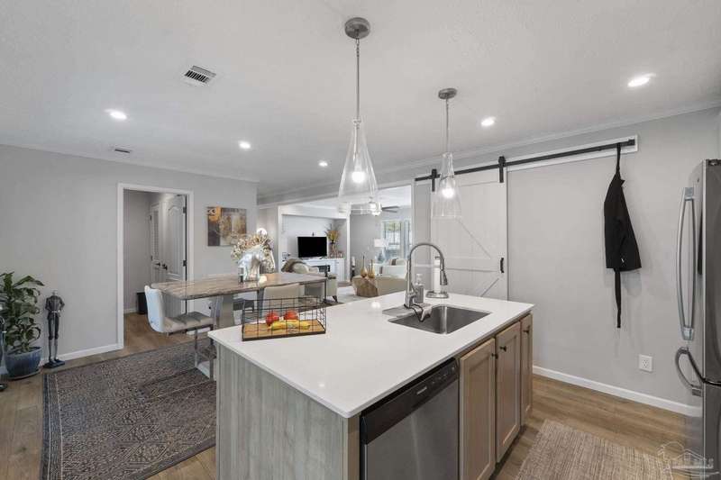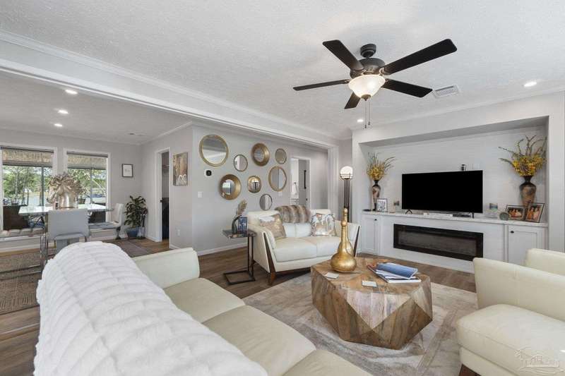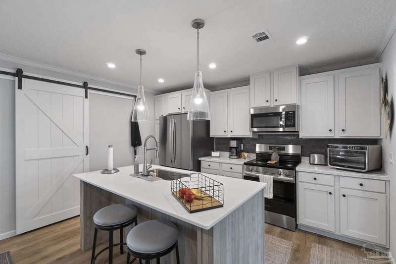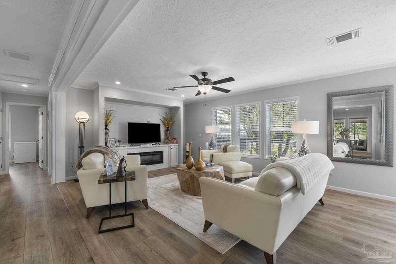 Are you ready to start your Lakefront Lifestyle? This energy-efficient 2024 home in Twin Lake Estates won't last long! Situated on a beautifully landscaped lot that is just under a 1/2 acre with a park-like setting with 70 feet of lakefront property. Offering 1,568 sq. ft., this thoughtfully designed 3-bedroom, 2-bath home combines modern efficiency with exceptional comfort. Inside, you'll find a spacious living room with a cozy electric fireplace and a large open kitchen with island, perfect for entertaining. Step outside to the expansive screened porch with electric outlets, ideal for enjoying peaceful lake views. The backyard is a true retreat, featuring a privacy fence, aluminum dock and deck with power and water, a canoe stand, and a relaxing hammock swing. Two storage buildings with power provide ample space for tools and hobbies. Additional highlights include: 24 Watt Generac Mobile Link Whole House Generator Circular driveway with an 18x20x6 double car carport Energy-efficient systems, including an electric water heater with app control, AC with Ecobee App, and thermostat with Alexa integration, Beautiful outdoor spaces designed for both relaxation and recreation Whether you're looking for a full-time residence or a weekend getaway, this home offers the perfect blend of modern living, energy savings, and lakeside tranquility.