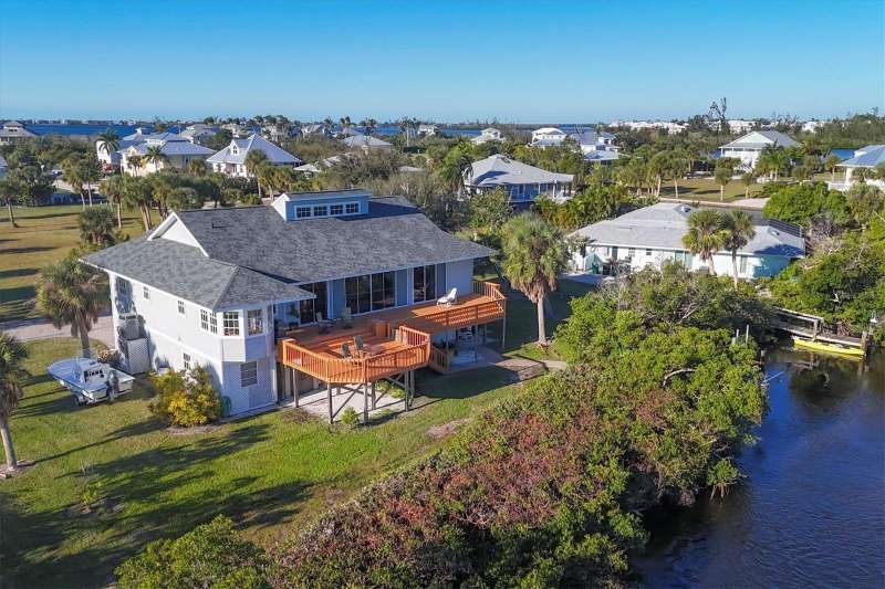 Luxurious Waterfront Living at Placida Pointe! Discover the ultimate retreat in Placida Pointe, a prestigious community perfectly blending tranquility, luxury, and convenience. Located near Boca Grande, this extraordinary property combines expansive water views with access to world-class amenities. Nestled at the end of a peaceful cul-de-sac, this home offers an impressive 150 feet of Coral Creek frontage and an additional 140 feet along a canal, creating an unparalleled sense of privacy and panoramic water vistas. A private dock with a boat lift (dock repair/replacement needed) provides access for kayaks or flats boats to the Intracoastal Waterway and Gulf of Mexico, making it a boater’s dream. The marina in Placida Harbour Club will accommodate larger boats access. From the moment you step inside, you’ll be captivated by breathtaking views of Coral Creek, elegantly framed by the home’s open and inviting layout which is ready for its new owner to personalize & update to their desire. The kitchen, featuring a gas stove, cozy breakfast nook, and the convenience of a dumbwaiter, is perfect for preparing meals and enjoying casual dining. The two-level outdoor deck invites you to unwind while soaking in the serene surroundings, whether with your morning coffee or during a sunset gathering. The spacious master suite boasts two walk-in closets and stunning water views, while the generously sized additional bedrooms provide ample space for family and guests. The lower level includes a two-car garage with 2 new impact-resistant garage doors (2025), a new a/c (2025), a laundry/utility room with a brand-new washer and dryer (2024), and a bonus area (not air conditioned) ideal for a workshop, craft room, or storage. Recent updates, including two new hot water heaters (2024), a refrigerator (2024), a new kitchen faucet (2024), and a new roof (2022), ensure comfort and peace of mind. Placida Pointe offers an exceptional lifestyle with a marina and boat slips, a private ferry to the unspoiled beaches of Little Gasparilla Island, three clubhouses, pools, tennis courts, and pickleball, along with a vibrant social calendar. Located just 1.5 miles from the Boca Grande Causeway, the home is also close to pristine beaches, golf courses, and dining establishments. With its vast water frontage, endless amenities, and unbeatable location, this waterfront oasis is ready to be personalized into the home of your dreams. Don’t miss this rare opportunity to own a piece of paradise!