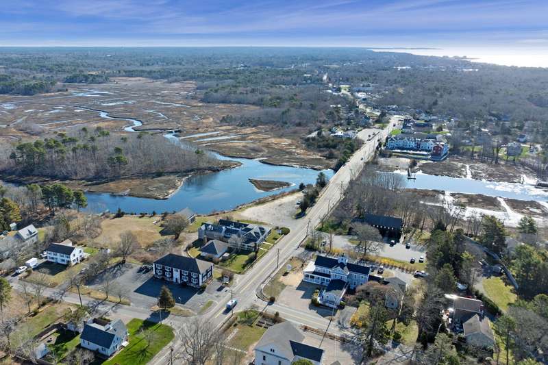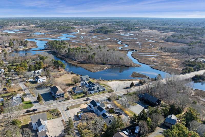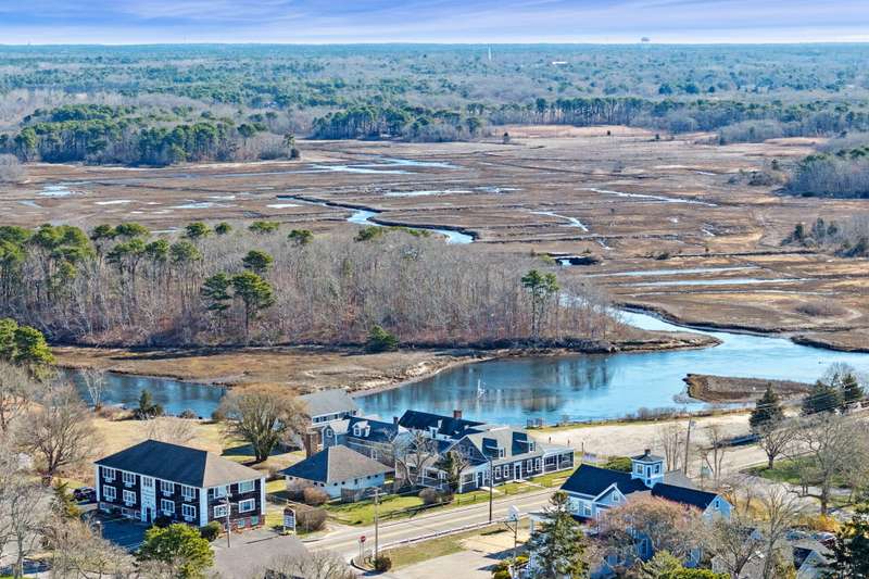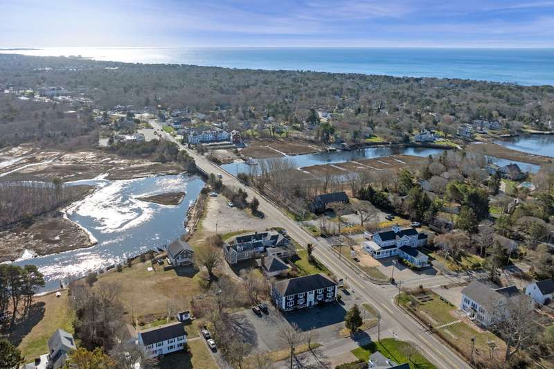 The property is situated on over 2.22 acres of waterfront property overlooking The Herring River. The site has two landing areas, with dockage potential, where easy access to Nantucket Sound can be found by traveling south on the river to open waters of The Sound via Kayak, Paddle Board, Canoe or the like. The land is improved by four buildings with 11,900 SF. The main building is 7,922 square feet and has a large restaurant space previously and spacious commercial kitchen area, three / four bedrooms, and five bathrooms. The previous restaurant had a capacity of around 375 persons based on municipal records. The Backhouse, which is located behind the Main Building has seven bedrooms and four bathrooms, living / dining rooms and deck overlooking the Herring River. The Side Cottage, located to the left of the Main House has four bedrooms, and two baths. There is also a large shed building to the rear of the property used for storage. Waterfront location, history, development potential, s