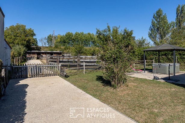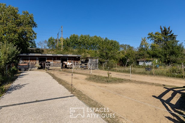 Unique in its use, this house is one of the few properties in Metz-Magny to offer private equestrian facilities within a residential neighborhood. It meets the needs of comfortable family life, while offering an ideal setting for horse riding enthusiasts looking for an atypical, functional place to live that is connected to nature.