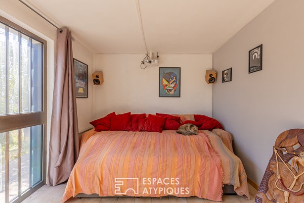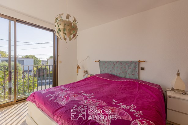 Spread over two levels, the house offers a fluid and functional layout. The ground floor has a first bedroom currently converted into a home cinema, and a second bedroom with its own bathroom, ideal for an independent office or a self-contained studio. A laundry/utility room and an adjoining garage complete this level. Upstairs, the living room enjoys plenty of natural light. The living room is equipped with a pellet stove, creating a warm atmosphere. The separate, fully fitted and equipped kitchen opens easily onto the dining room. A master bedroom, a contemporary bathroom with jet shower and steam room, and a dressing room complete the comfort of the upper floor. The whole is structured around a solid wood staircase, adding a touch of character to the space.